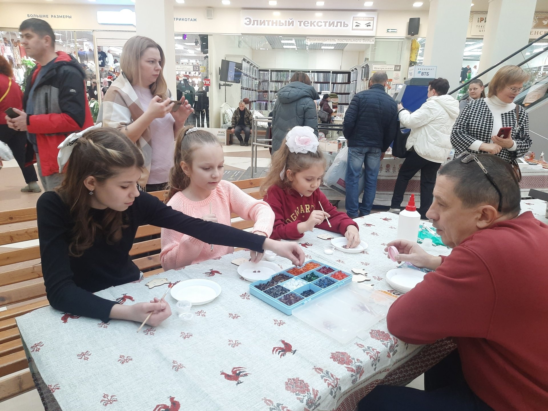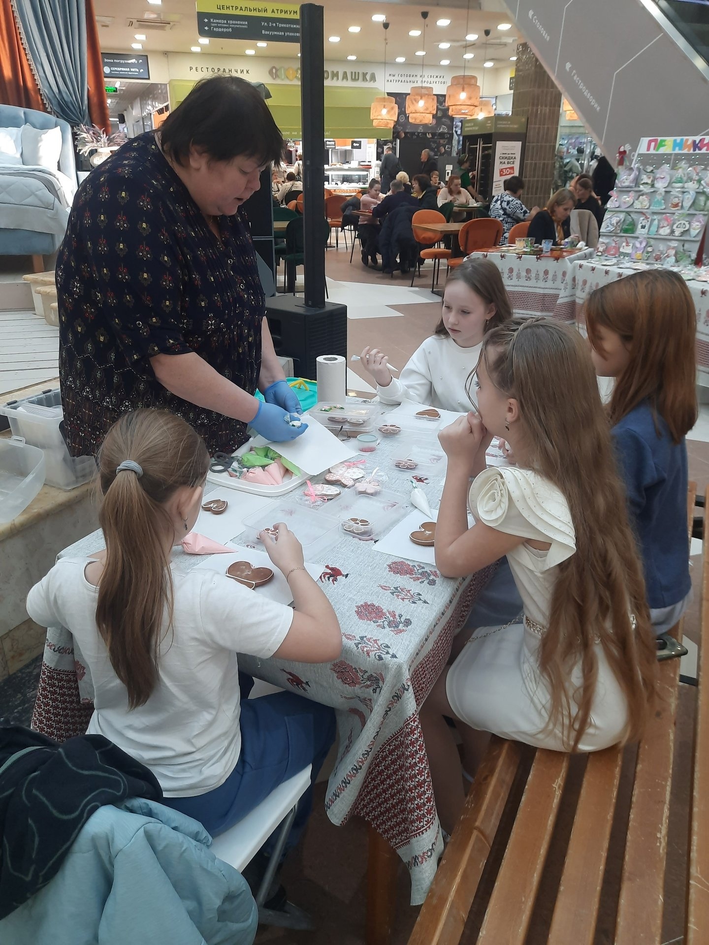 Вместе с руководителем народного коллектива «Лоскутная мозаика» Мариной Тулуповой ребята делали цветочки, декорированные пуговицами; Наталья Черепанова из г. Родники научила детей расписывать имбирные пряники; а обладатель звания «Мастер – золотые руки» Юрий Махаев (г. Иваново)провёл мастер-класс по стеклянной мозаике.