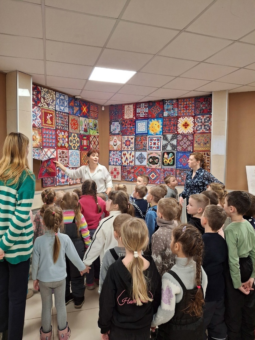 Посетителями выставки стали воспитанники Шилыковского детского сада, участницы студии «Крылья» и клуба «Рукодельница» при Лежневском доме культуры, а также учащиеся районных школ и многочисленные гости учреждений культуры. Интересно, что педагоги детского сада «Теремок» п. Шилыково построили экскурсию для своих ребят в форме развивающего занятия. Детям было предложено внимательно рассмотреть сюжеты, изображённые на фрагментах коллективного проекта «Русский стиль в лоскутном шитье», и вспомнить названия знакомых сказок, назвать пословицы, загадки, посчитать периодичность повторения определённого рисунка. Свои наблюдения дети зафиксировали в специально разработанном педагогами чек-листе.