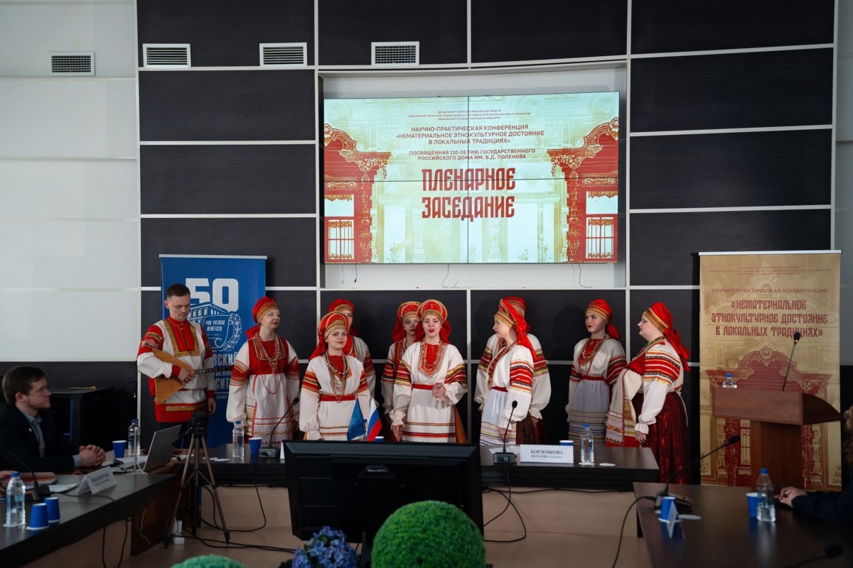 15 апреля состоялась научно-практическая конференция «Нематериальное этнокультурное достояние в локальных традициях», посвященная 110-летию Государственного Российского дома народного творчества им. В. Д. Поленова.