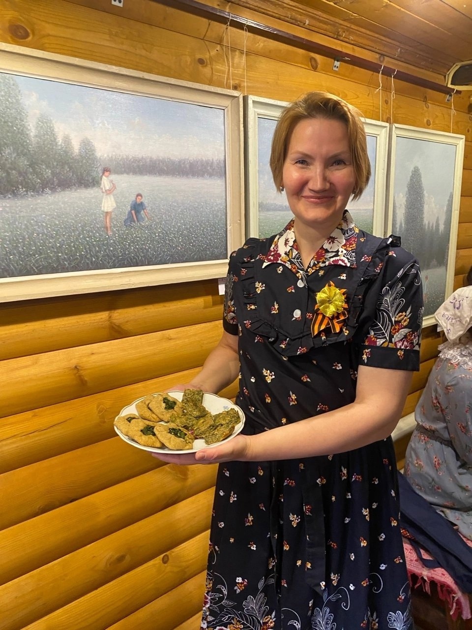️Стоит отметить, что в этом музее существует давняя традиция — поить гостей чаем из самовара. В качестве угощения к ягодно-травяному чаю посетителям вернисажа были предложены калитки с крапивой и снытью — это то, чем могли питаться наши бабушки и дедушки в непростые военные годы, когда весной появлялась первая зелень. Такое угощение очень понравилось гостям, особенно членам Ивановской региональной организации ветеранов.