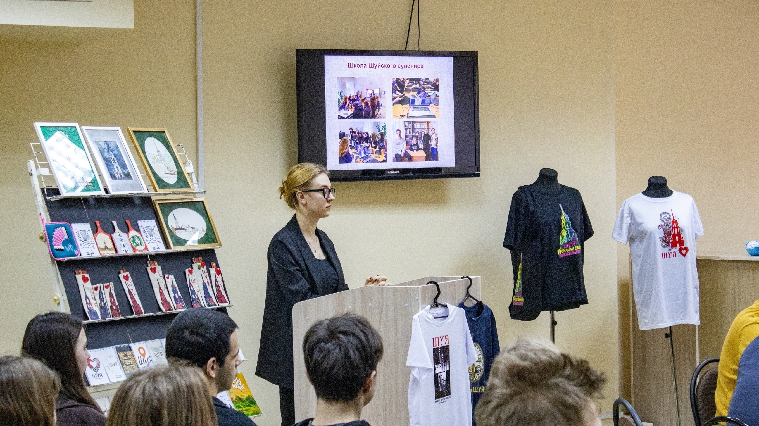 На практических занятиях в полиграфической компании «Полицентр» участники проекта учились создавать брендовый дизайн с помощью информационно-цифровых технологий. Также ребята стали активными участниками мастер-классов «Бренды Шуи в туристических сувенирах» с дизайнерами и педагогами по графическому дизайну, где рассмотрели роль сувенирных товаров в контексте продвижения территориального бренда и сами создали логотип подарочного сувенира Шуи для туристов.