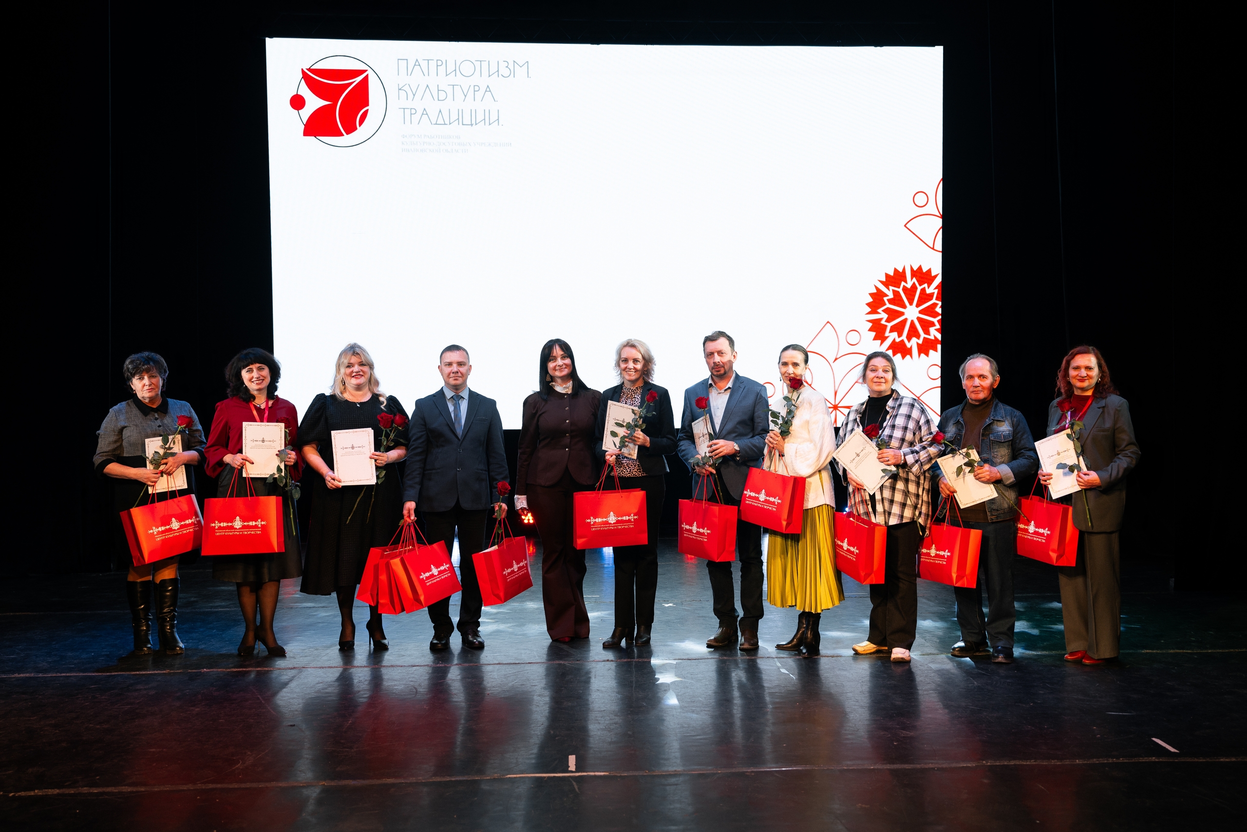 Завершилась работа Форума концертной программой «Героям Отечества посвящается», в рамках которой директор Областного координационно-методического центра культуры и творчества Евгения Дворникова наградила победителей III Областного конкурса деятельности культурно-досуговых учреждений муниципальных районов и городских округов «ДК: УРОВЕНЬ 2.0», поблагодарила партнеров в реализации совместных проектов, отметила лучших представителей культурно-досуговой сферы Ивановской области.