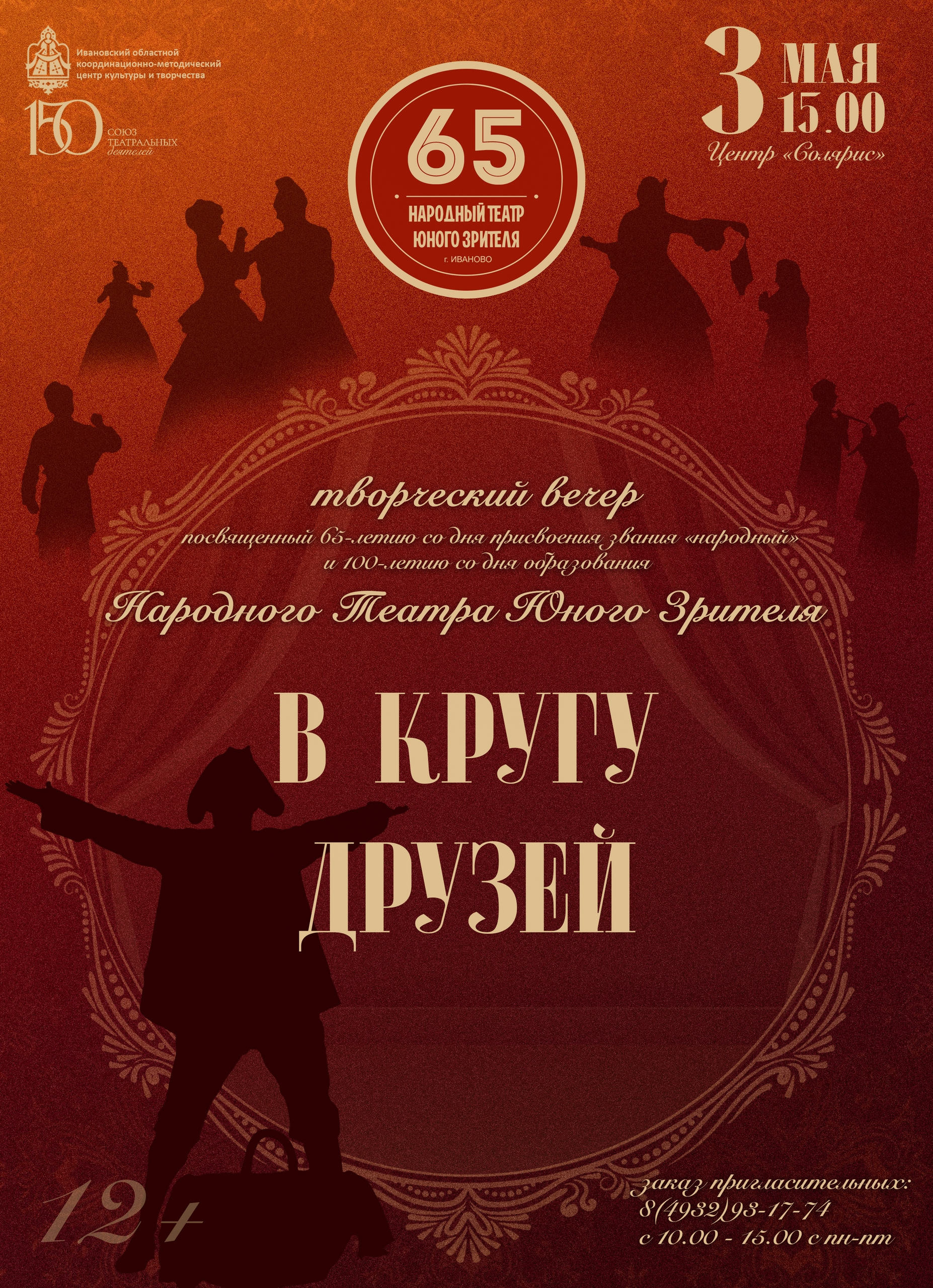 Заслуженный коллектив народного творчества Ивановской области Народный Театр Юного Зрителя Областного координационно-методического центра культуры и творчества готовится отпраздновать двойной юбилей: 100-летия со дня образования коллектива и 65-летия со дня присвоения звания народный коллектив. Творческий вечер «В кругу друзей» представит всех артистов действующей труппы.