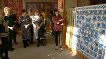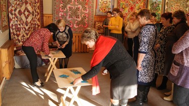 В выставочном зале Дома ремёсел целое царство панно и одеял, которые притягивают к себе взгляды и завораживают. Более подробно о каждой работе, о технике выполнения рассказала Наталья Раева, мастер студии «Лоскутная техника» Ильинского Дома ремёсел. Она пояснила, что для создания одного панно или одеяла может использоваться сразу несколько техник изготовления: шитьё по бумаге, шитьё из треугольников, техники «уголки», «колодец», «аппликация», японская лоскутная техника «йо-йо» и других. Наталья Витальевна предложила всем желающим попробовать собрать мотив из лоскутов ткани и провела небольшой мастер-класс по созданию элемента в лоскутной технике «йо-йо». Все, кто попробовал сам применить данную технику, наверное, были удивлены её простоте и широте использования.