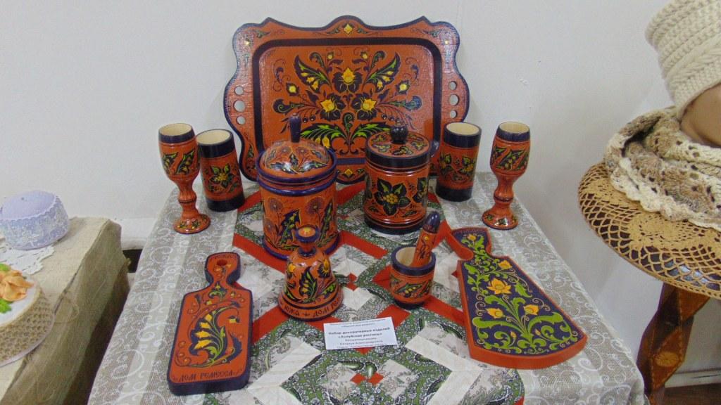 В экспозиции представлено более 300 изделий по различным направлениям декоративно-прикладного творчества: плетение из лозы, роспись по дереву, бисероплетение, лоскутное шитьё, текстильная игрушка, аппликация из соломки, декупаж, художественная вышивка, художественное вязание, декор предметов интерьера. Среди работ - текстильные куклы, кружевные салфетки, скатерти, вязаные жакеты, вышитые картины, панно из соломки, тканые пояса, плетеные корзинки, предметы декора и многое другое.