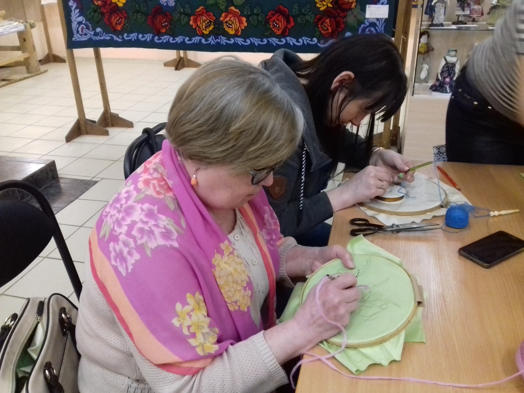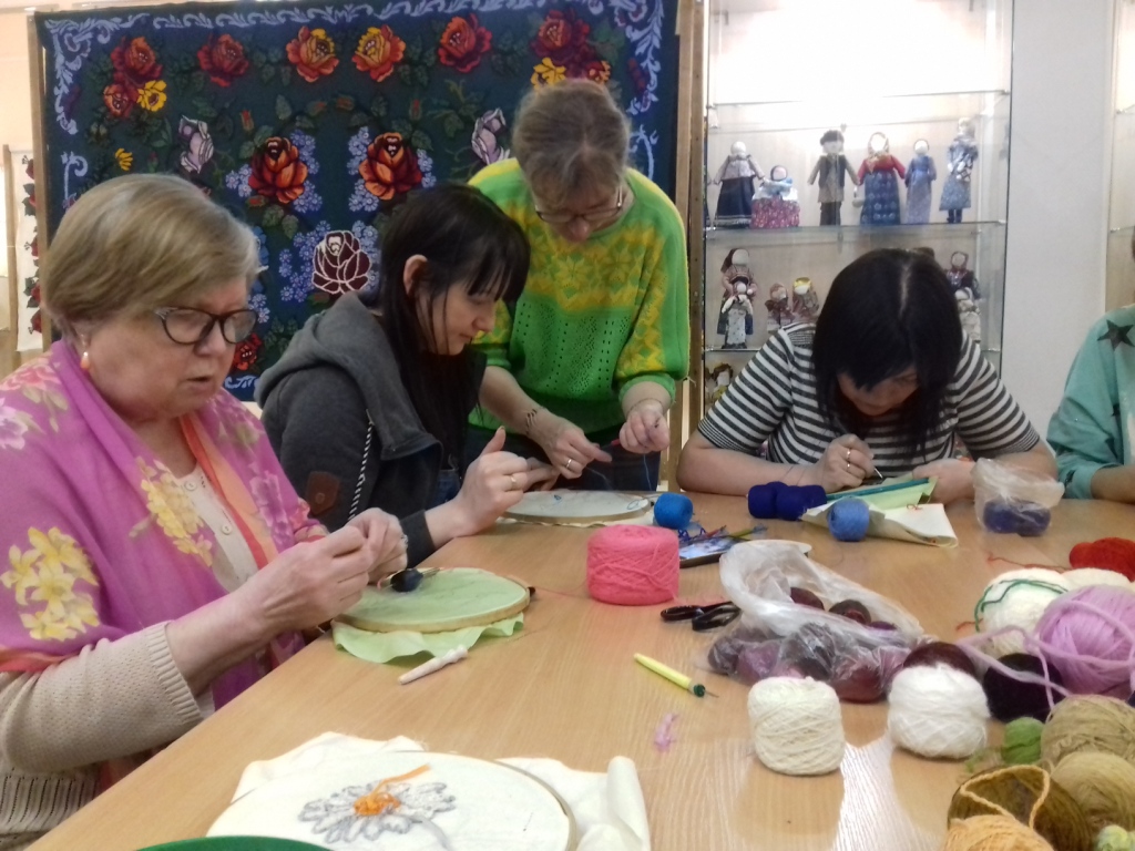 20 апреля в выставочном зале областного координационно-методического центра культуры и творчества в рамках выставки наивного текстиля из Пермского края «Занинское рукоделие. Красота ковров Анфисы Пихтовниковой» состоялся мастер-класс по объёмной ковровой вышивке.