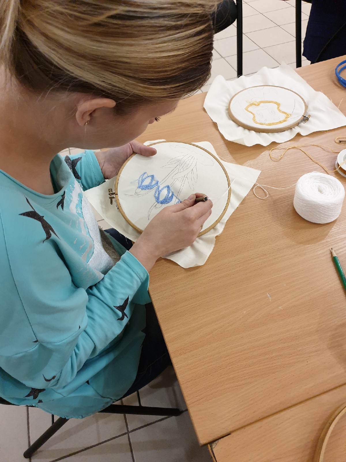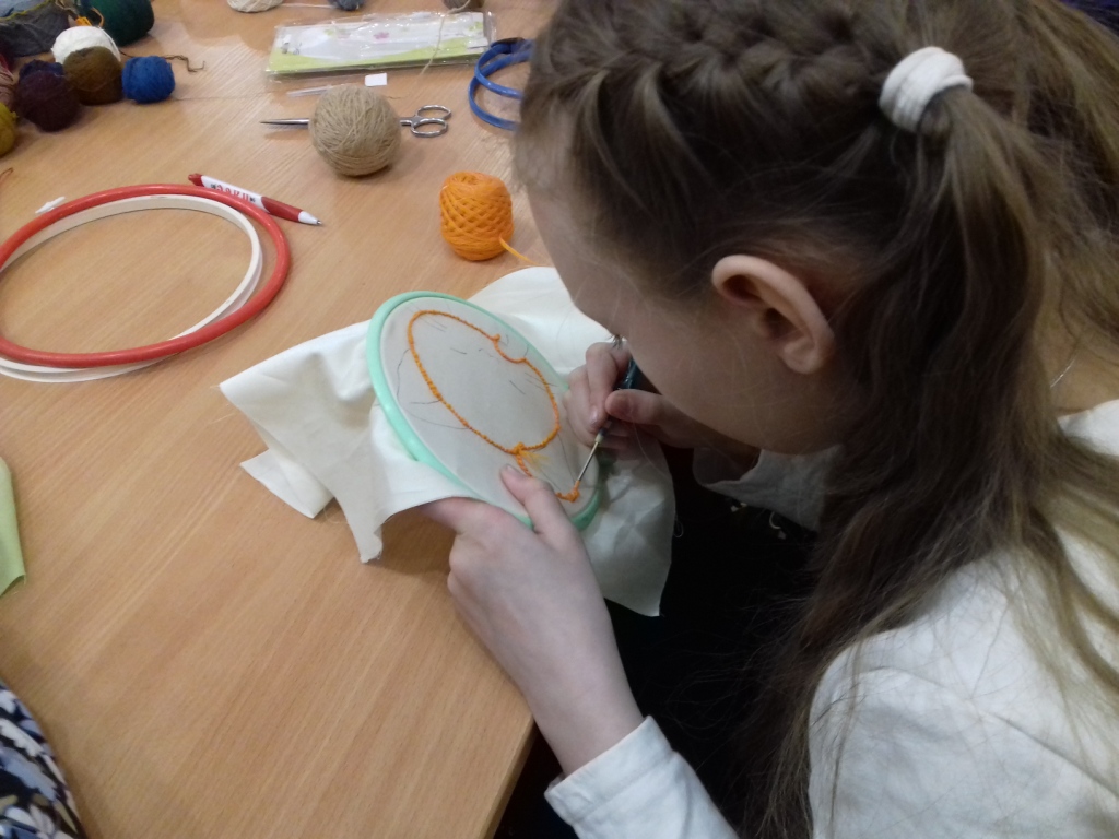 Ведущая мастер-класса Наталья Громова объяснила участникам принципы работы ковровой иглой и технику петельчатого стежка. В ходе занятия участники разобрались, какая толщина иглы предназначена для плотной и тонкой ткани, какую длину и глубину стежка необходимо делать, как менять нитку, как оформлять контур рисунка, как фиксировать готовую вышивку с изнаночной стороны и для чего в последствии может быть использован такой вышитый декор.
