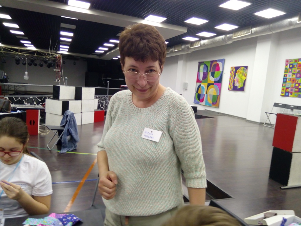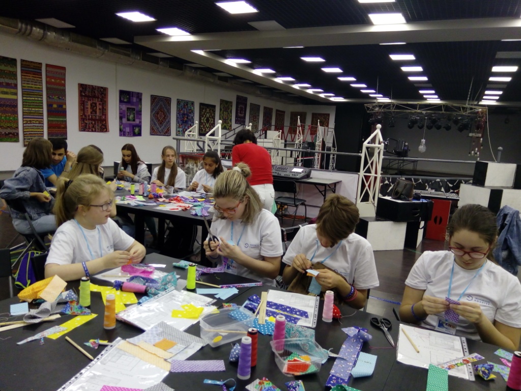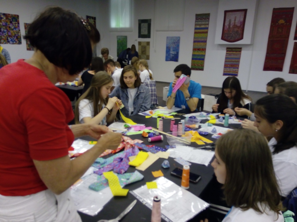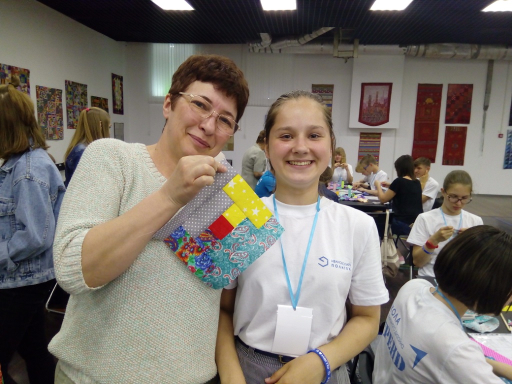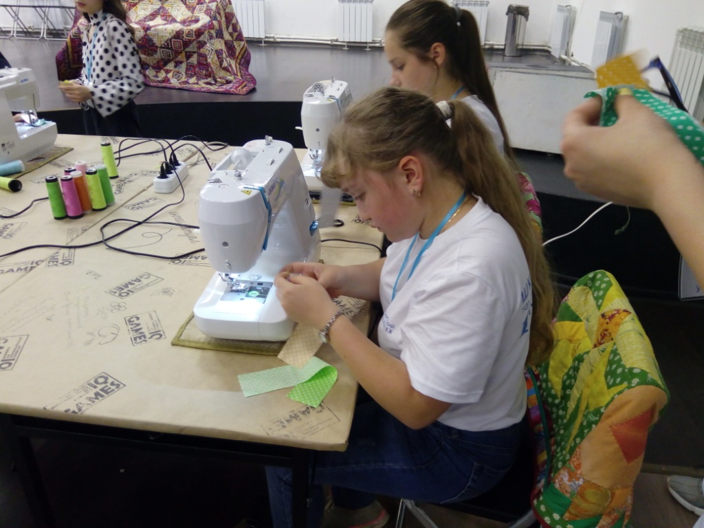 Стоит отметить, что многие посетители занятия раньше даже не держали в руках иголку. Хочется выделить ученицу школы Анастасию Кириленко. Именно она самой первой собрала готовый блок (всего за занятие девочка выполнила два блока).
