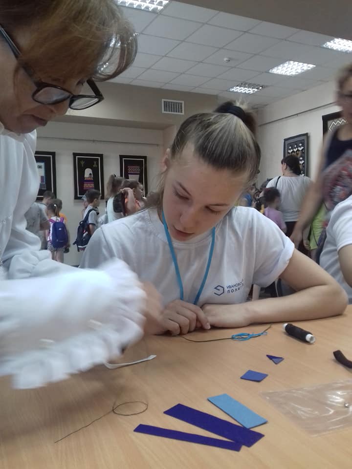 7 июня якутские мастерицы провели мастер-класс по своей традиционной технике лоскутного шитья для летней школы текстильного дизайна «Trend». Ребята пришли в Ивановский дом национальностей посмотреть выставку «Лоскутный мир Якутии» и попробовать свои силы в шитье из сукна. Темой урока в этот раз стала «Техника кантирования».