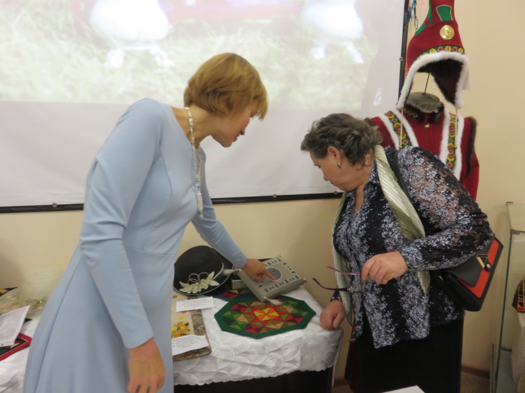 На выставке представлены вышивка из конского волоса, шляпы из них же, а также конское убранство, подушки-думки, сумки, рукавицы из меха лисы и заячьих ушей. Есть мягкие игрушки из сукна.