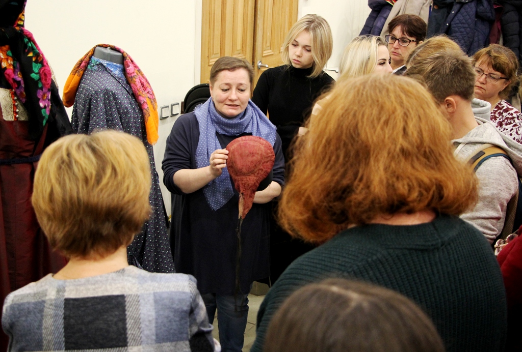 Базой для лекционной части занятия стала выставка «Бабий век», в которой представлены 15 костюмов из собрания известного коллекционера и знатока русского традиционного костюма Сергея Анатольевича Глебушкина (г. Москва), а также 2 костюма и 10 головных уборов из фондов Ивановского государственного историко-краеведческого музея им. Д.Г. Бурылина.
