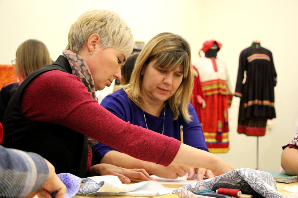 8 октября 2019 года в ресурсно-выставочном центре Музея ивановского ситца состоялось открытое лекционно-практическое занятие «Русский традиционный женский костюм рубежа XIX-XX веков».