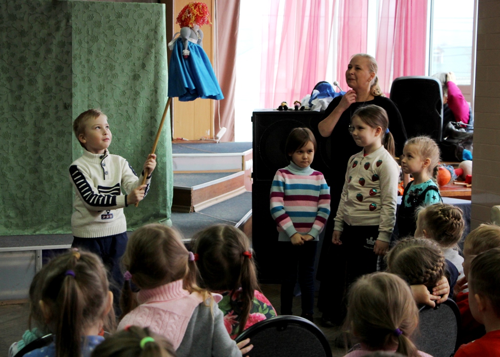 Ребятам рассказали о видах театральных кукол, показали их в действии и, что самое интересное, дали попробовать ребятам самим почувствовать себя самыми настоящими актёрами театра кукол!
