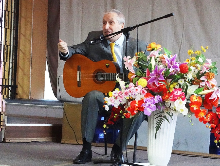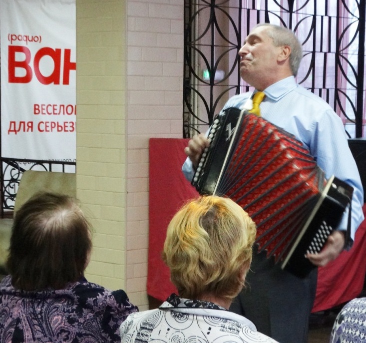 В гостях у ветеранов был солист клуба "При свечах" Павел Коликов. В его исполнении прозвучали авторские песни и стихи о любви, дружбе, верности и разлуке. Затем Павел, взяв гармошку, что называется "пошел в народ ". Все вместе вспомнили задушевные лирические песни своей молодости. Третью часть его выступления составили песни 70-х годов.