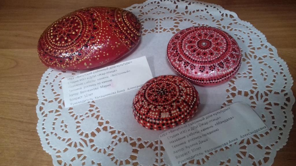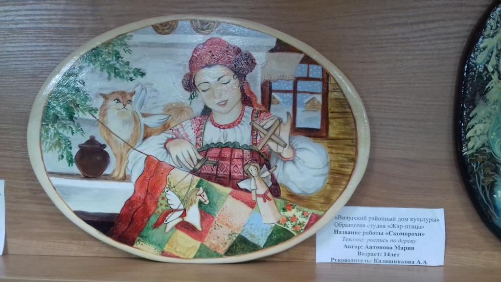 На выставке представлены работы учеников детской студии изобразительного и декоративно-прикладного искусства «Жар-Птица» и участников любительского объединения для взрослых «Креатив». О мастерстве руководителя Анны Калашниковой говорит то, что уровень детских работ из года в год растёт, ребята совершенствуют навыки росписи по дереву и стеклу, бумагопластики, пластилинографии. Студийцы младшего возраста осваивают живопись, аппликацию, декорирование, их работы демонстрируют раскрытие фантазии и творческого потенциала детей. Любительское объединение «Креатив» для взрослых позволяет людям, увлечённым декоративно-прикладным творчеством, получать новые навыки ручной работы, повышать мастерство, участвовать в выставках и конкурсах. За 2017-2019 годы портфолио студии ИЗО и ДПИ «Жар-Птица» пополнилось тремя дипломами I степени, 18-ю дипломами за I место, 1 дипломом Лауреата и 1 дипломом Победителя районных, областных и международного конкурсов.