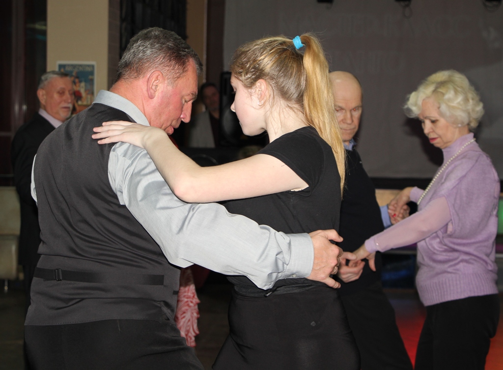 Очень рады мы были представителям старшего поколения, тем замечательным людям, кто помнит, как танцевали танго в городских садах под оркестр. Одна из пар, не можем не поделиться, была очень рада возможности окунуться в свою юность и вспомнить забытые мелодии, которые сегодня, увы, далеко не везде можно услышать. А услышать в ОКМЦКТ можно было не только записи, но живое исполнение танго вокальным ансамблем «Песня» (руководитель – Виктор Павлович Андрусенко) и солистами вокальной студии «Элегия» (руководитель – Валентина Кирилловна Брянцева) Вадимом Бяликом и Дмитрием Герасимовым.