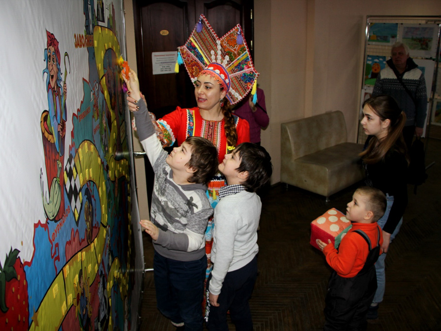 Ребят дошкольного и школьного возраста, пришедших на кинопраздник встречали сказочные герои и провожали в музей театра, где в дни кинофестиваля открылась выставка декоративно-прикладного творчества «В мультцарстве, государстве».