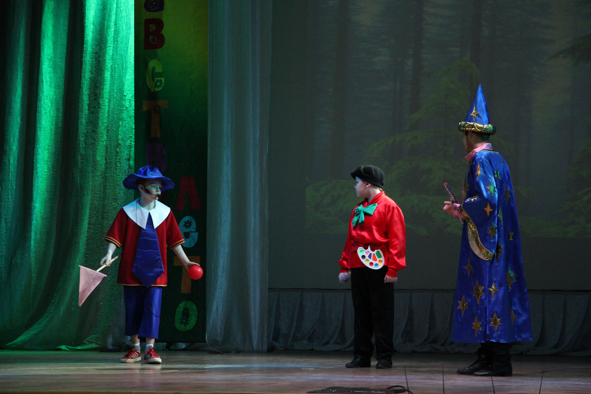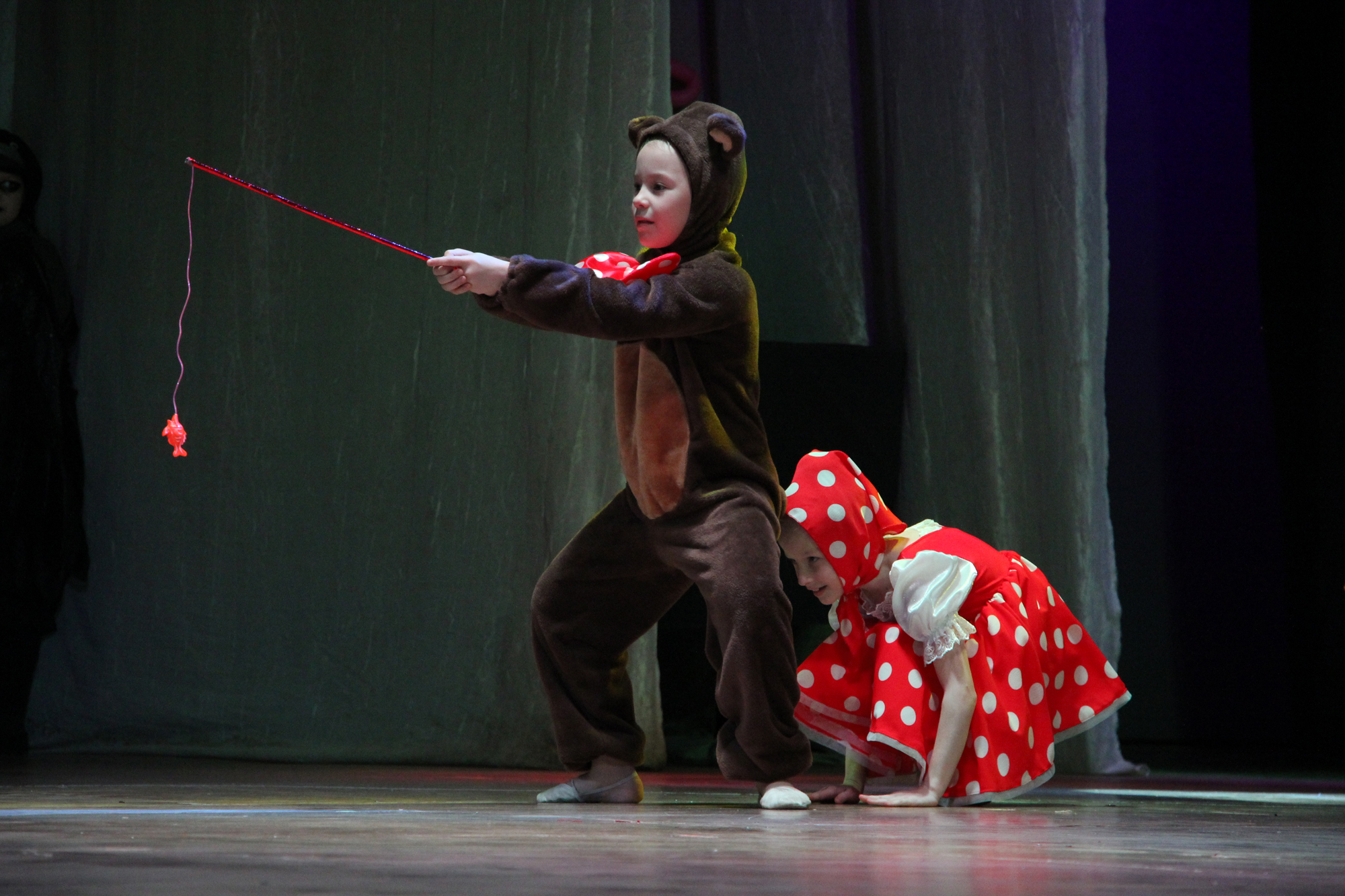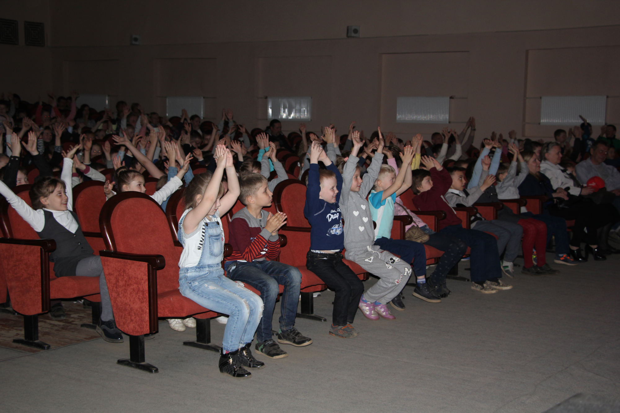 Нельзя не сказать, что зрители очень активно реагировали на все, что происходило на сцене: переживали за героев, которых прекрасно сыграли артисты театральной студии «Жаворонок» (рук. Л.С. Алекса), участвовали в играх и конкурсах, а также – подпевали артистам.