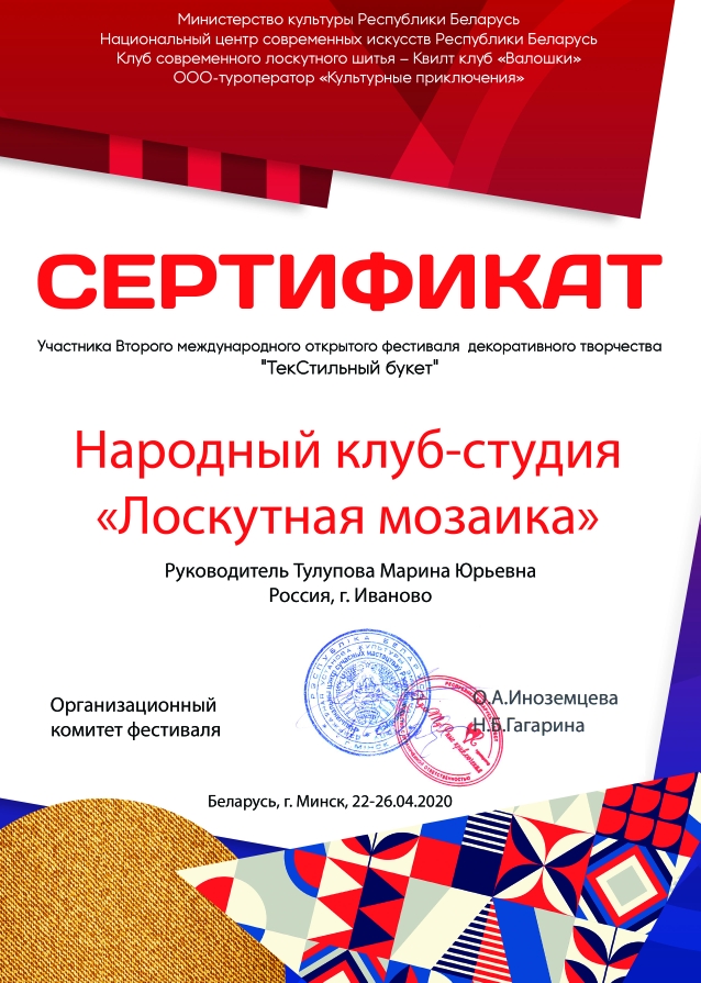 II Международный фестиваль декоративно-прикладного творчества «ТекСтильный букет» в г. Минск в апреле 2020 г. для российских мастеров лоскутного шитья проходил в виртуальном формате. Девиз Фестиваля 2020 г. – «Опять весна!..»