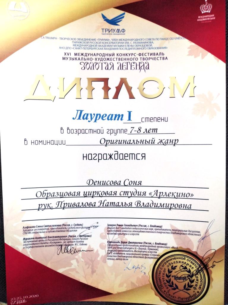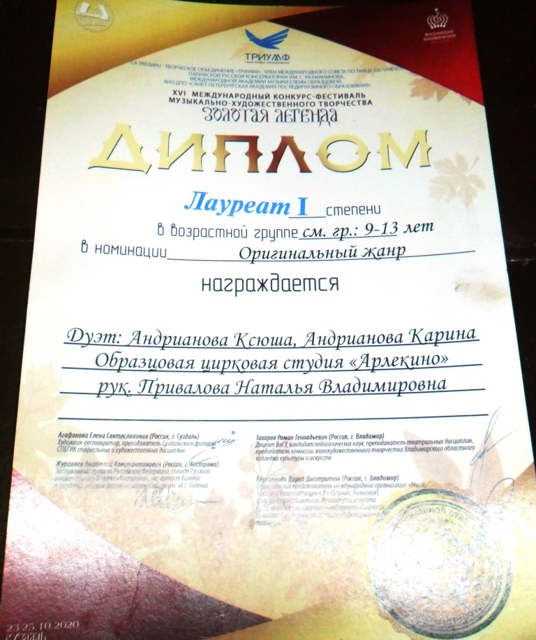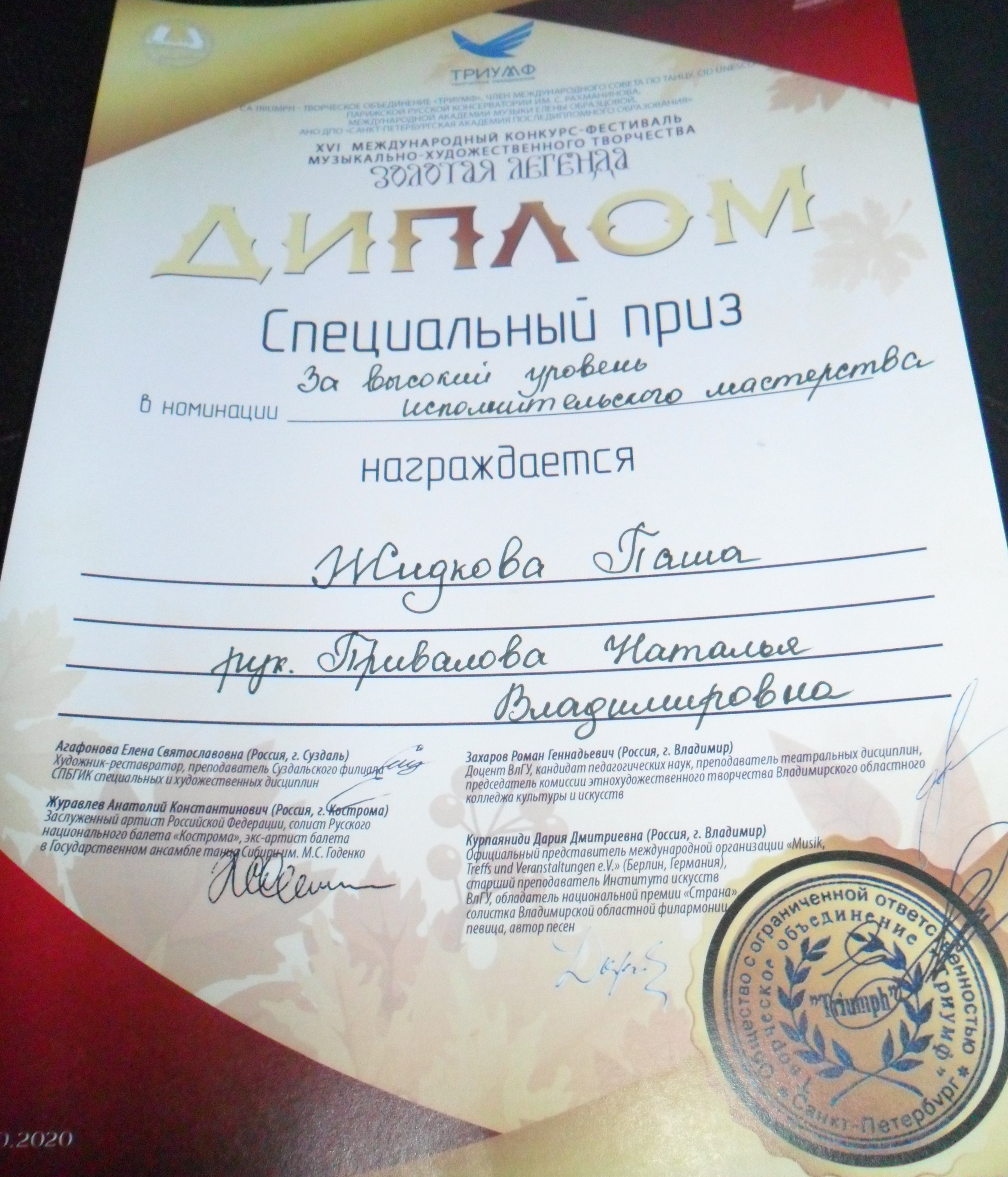 24 октября 2020 года в г. Суздаль Владимирской области прошел Международный конкурс-фестиваль музыкально-художественного творчества "Золотая легенда", в котором приняли участие 16 регионов России (Москва, Владимир, Курск, Вологда и др.). а также коллективы из Республики Беларусь.