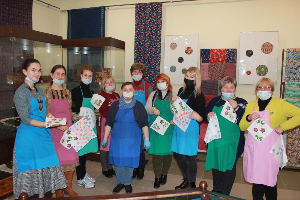 В течение ноября областным координационно-методическим центром культуры и творчества совместно с Музеем ивановского ситца было проведено 3 очных практических занятия по ручной набойке в рамках курса по изучению народного костюма проекта «Школа фольклора».