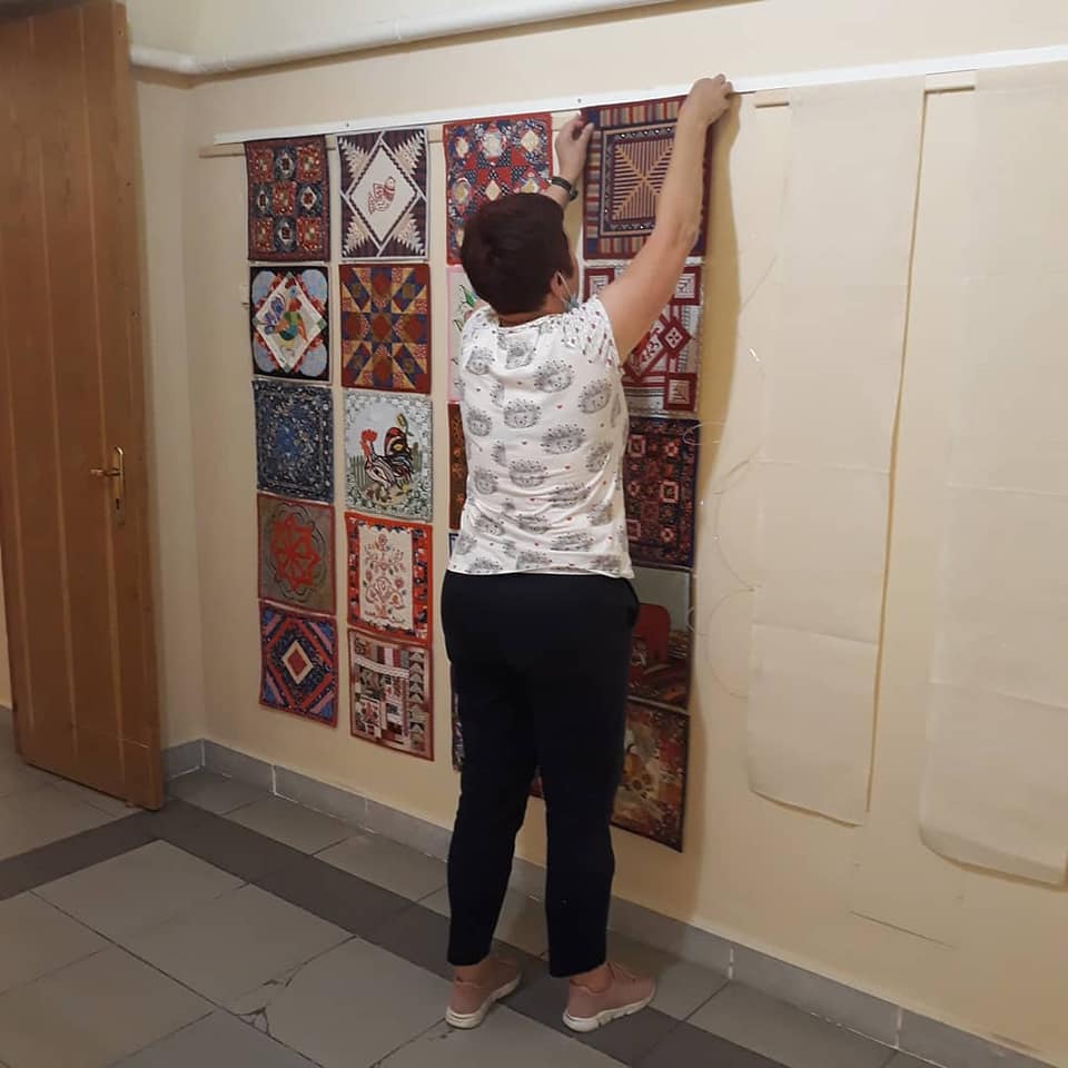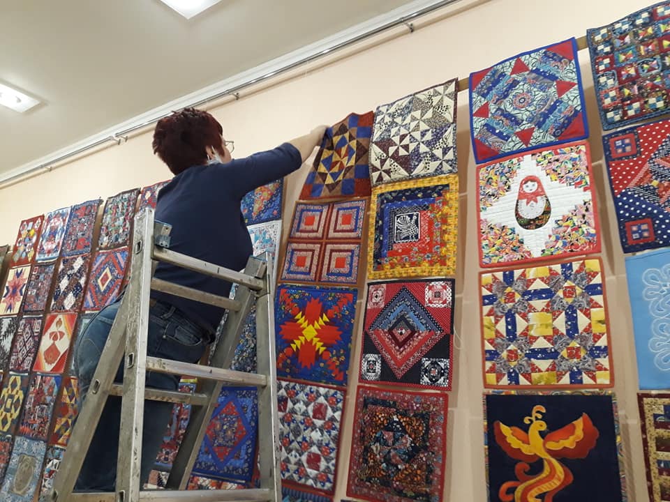 На данный момент участницами сшито и прислано в адрес куратора проекта около 100 квадратных блоков, которые уже соединились в 3 лоскутных полотна. Первое, состоящее из 35 блоков, было продемонстрировано на выставке «Шедевры лоскутного шитья» в Гостином дворе г. Москвы в сентябре этого года. Вторая часть вместила 24 блока, украшенных ручной и машинной вышивкой, и была показана посетителям выставки «Рукотворные гармонии, путешествие в мир вышивки» в Костроме в ноябре. И третья, самая большая часть проекта, состоящая из 60 блоков, сейчас размещена в фойе ОКМЦКТ, где её может посмотреть каждый желающий. (Наличие средств индивидуальной защиты и предварительная запись обязательны).