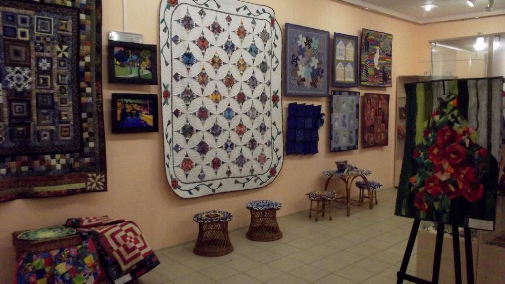 На ней было представлено около 100 коллективных и индивидуальных работ, созданных участницами клуба за весь срок его существования. Панно, одеяла, подушки, коврики, аксессуары, куклы, игрушки – даже это не полный перечень изделий клуба. Несколько призовых панно сейчас принимают участие в крупных российских выставках.