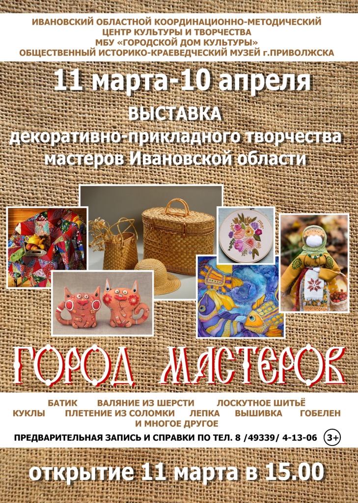 11 марта в общественном историко-краеведческом музее г. Приволжска при Городском Доме культуры при содействии Областного координационно-методического центра культуры и творчества открылась выставка «Город мастеров».