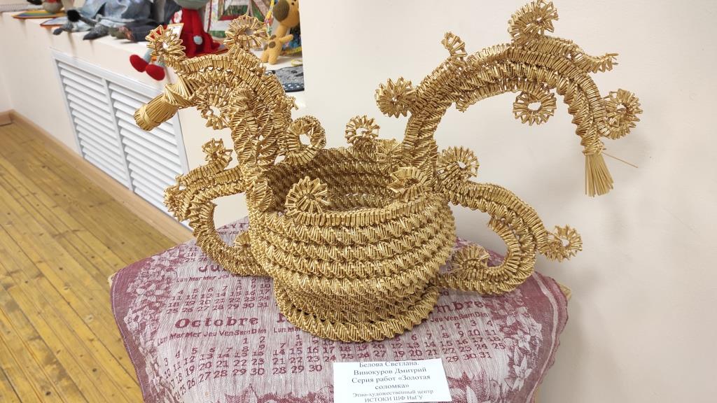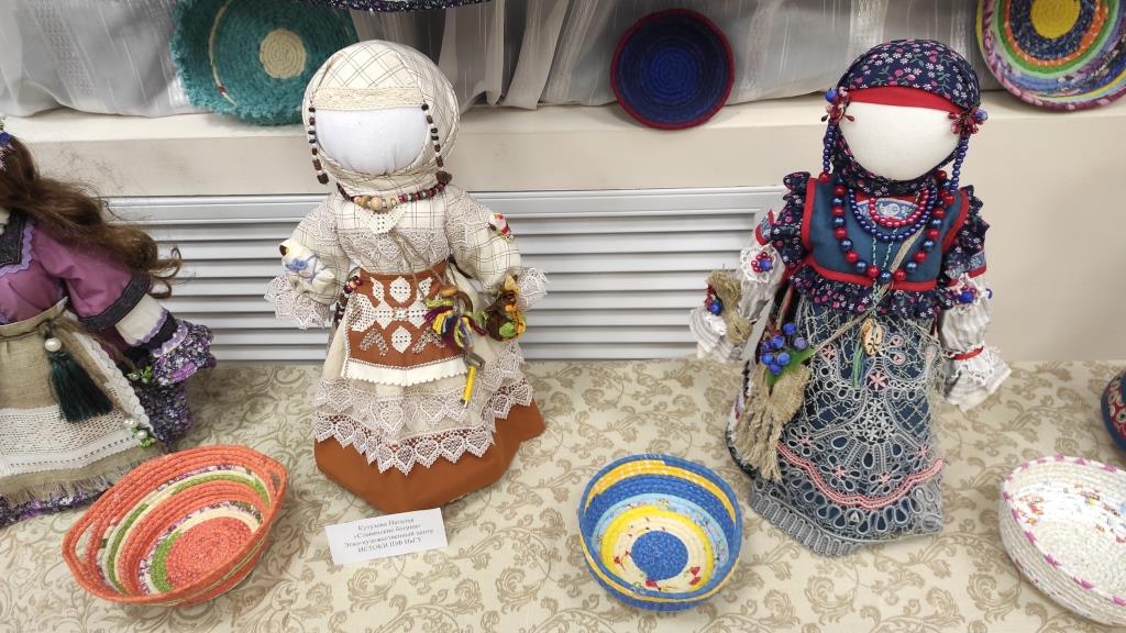 Лоскутное шитьё, береста, соломка, бисероплетение, вязание, валяние из шерсти, ткачество, вышивка, куклы и игрушки из текстиля, пряжи и дерева, батик, картины из теста – это и многое другое можно увидеть на выставке до 10 апреля.