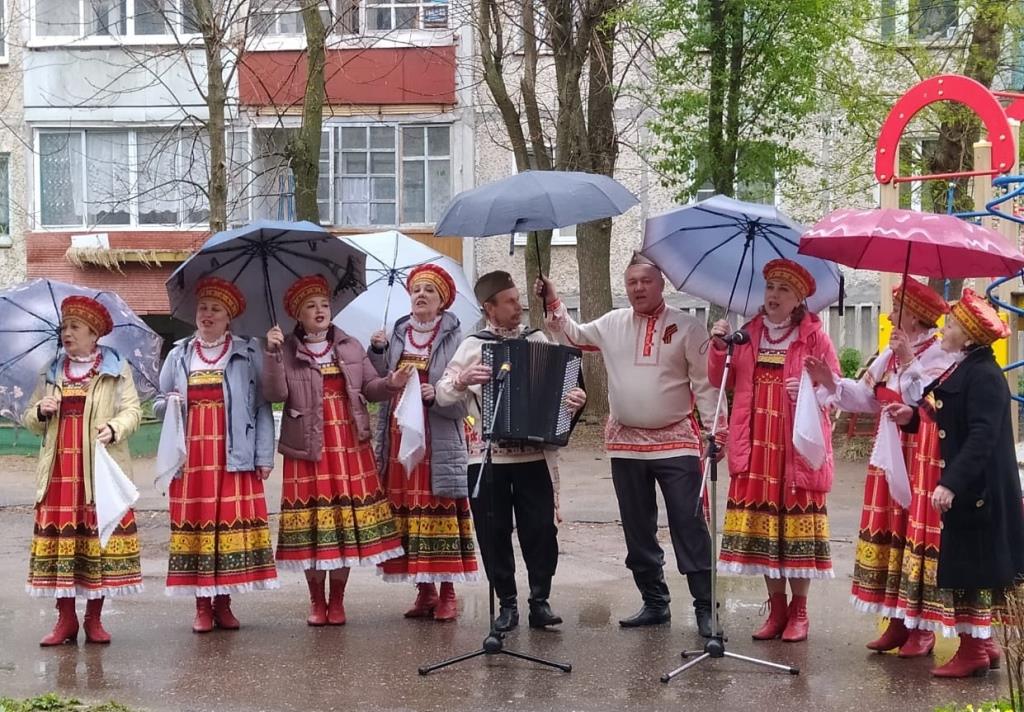 По сложившейся традиции самодеятельные художественные коллективы и культурно-досуговые учреждения Ивановской области приняли активное участие в праздничных мероприятиях, посвященных Дню Великой Победы. С 7 по 9 мая, в рамках Всероссийской акции «Поём двором», 109 творческих коллективов и солистов-вокалистов поздравили 372 ветеранов Великой Отечественной войны, тружеников тыла, блокадников, бывших несовершеннолетних узника концлагерей, проживающих в разных уголках нашего региона. Всем двором с ветеранами пели «Катюшу», «Смуглянку» и, конечно же, «День Победы».