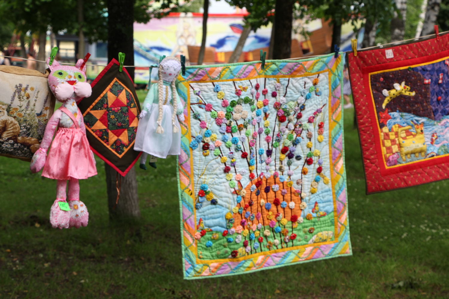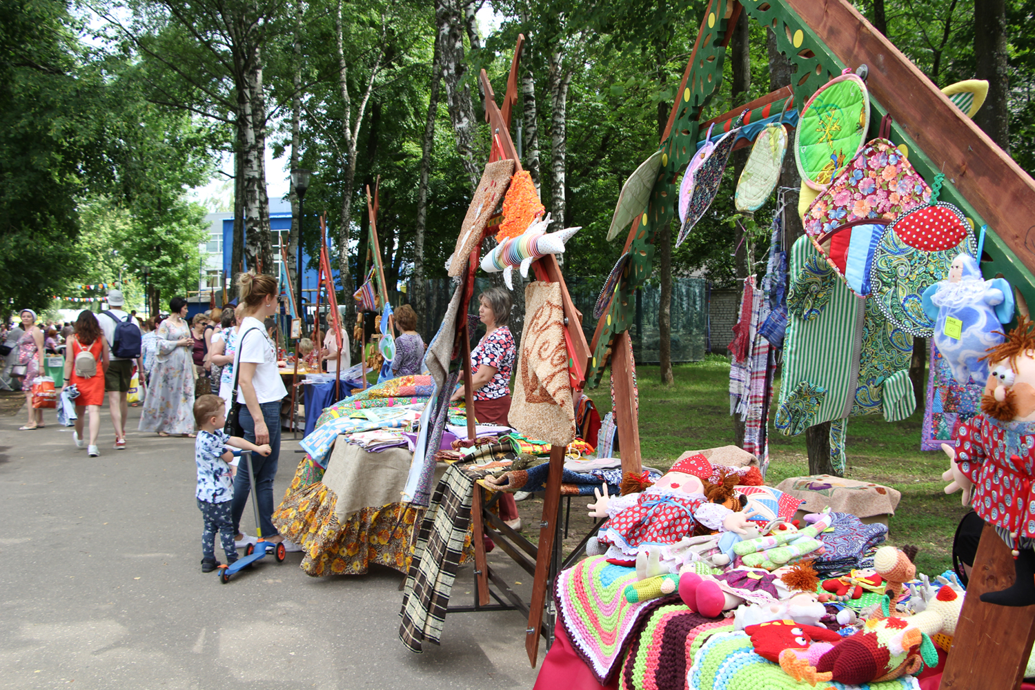 15 июля в парке им. Степанова развернулось настоящее народное гуляние с ремесленниками, угощениями и играми. Последние, разумеется, больше всего было интересно детям, которые с большим удовольствием собирали лоскутные пазлы, раскрашивали лоскутные панно, бросали дротики в лоскутный дартс. С превеликим удовольствием и дети, и взрослые участвовали в лоскутной лотерее и выигрывали подарки от участников ярмарки партнеров фестиваля. Радовали глаз и слух гостей праздника творческие коллективы Иванова и Ивановской области: образцовая цирковая студия «Арлекино», заслуженный коллектив народного творчества народный ансамбль песни и танца «Калинушка», народный ансамбль танца «Родник», образцовая студия детской моды «Каламбина», вокальная группа «Звездопад».