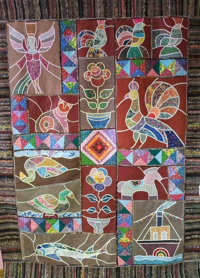 Экспозиции представят лучшие коллективные и индивидуальные фестивальные работы, выполненные по мотивам народных сказок, эпосов, лубочных картинок, росписей, орнаментов. Это и воссозданные в лоскутном шитье расписные городецкие прялки Нижегородского клуба «Параскева», и масштабные коллективные работы, к примеру, «Колесо бытия» тульского клуба «Лоскутная слобода». Это также работа питерской художницы Натальи Галумовой «Москва-Санкт-Петербург», панно «Сансара» Марии Перминовой, проект Татьяны Синицыной «Вот моя деревня. Вот мой дом родной», выполненный из старинных хлопчатобумажных тканей советского периода. Бесконечно можно рассматривать работы Оксаны Винниченко, Галины Красниковой, Марины Коба, Александры Никулиной, Анатолия Белика, Людмилы Бадаевой и других авторов-победителей конкурса «Искусство современного шитья».