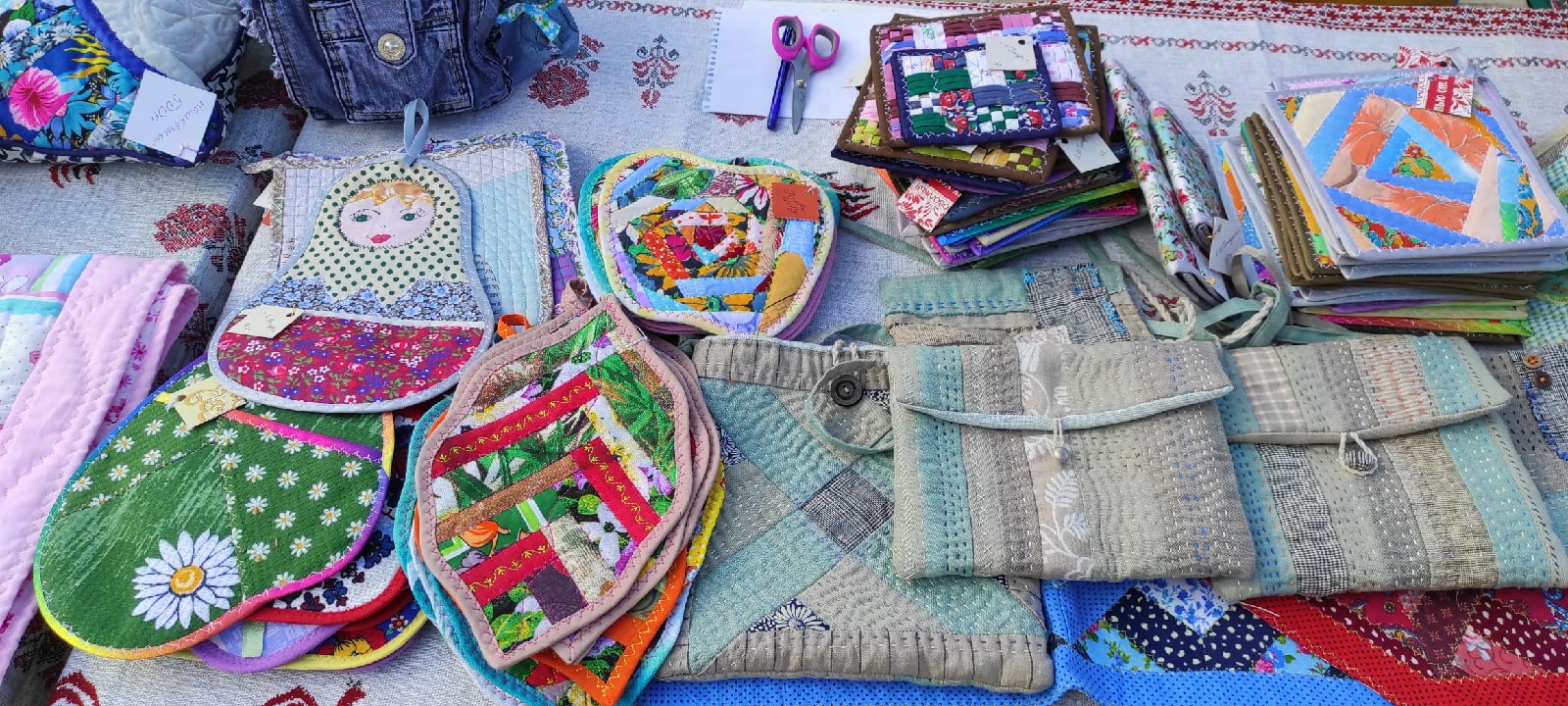 На ярмарке можно было приобрести гжель, декупаж, мыло, народные куклы, куклы из полимерной глины, текстильные игрушки и сумки, а также разнообразные изделия, выполненные в лоскутной технике.