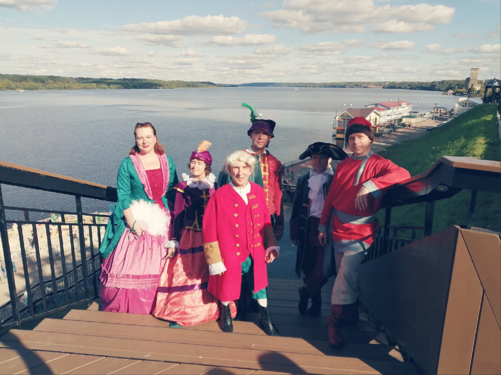 На открытой площадке Волжского бульвара выступил заслуженный коллектив народного творчества Ивановской области народного театра юного зрителя (художественный руководитель - заслуженный работник культуры РФ Валерий Васильевич Маслов), который представил еще одну версию совместного с Ивановским государственным историко-краеведческим музеем им. Д.Г. Бурылина проекта “Живой лубок”. В завершении встречи ивановские артисты в сценических костюмах прогулялись по Волжскому бульвару и сфотографировались со всеми желающими.