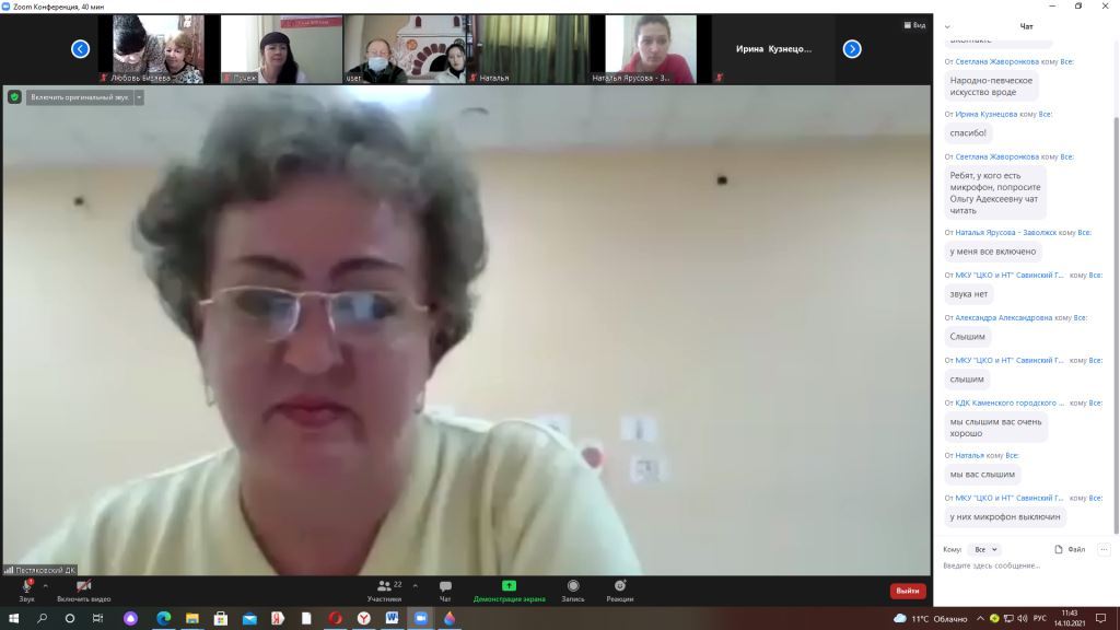 14 октября в онлайн-формате на платформе ZOOM прошел репертуарный совет для руководителей певческих и инструментальных коллективов Ивановской области, имеющих звание «Народный («образцовый») самодеятельный коллектив».