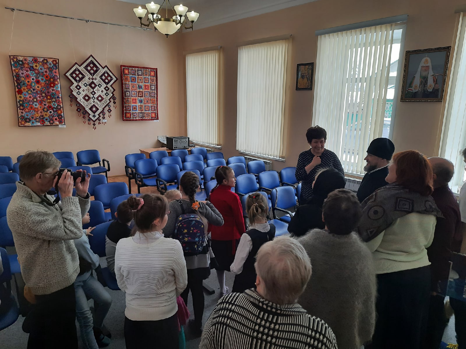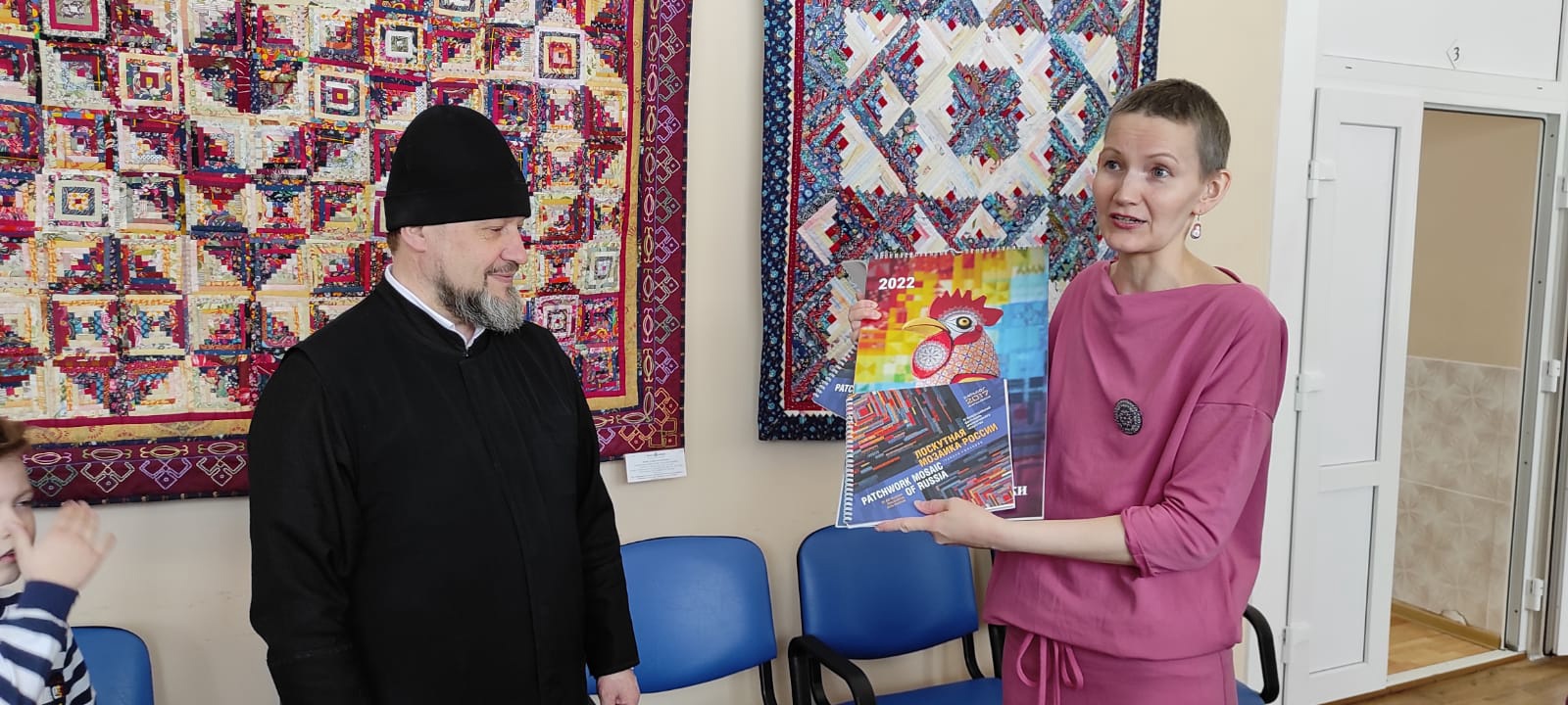 Ведущий методист ОКМЦКТ Анастасия Шоличева поприветствовала гостей и рассказала о деятельности учреждения, направленной на сохранение, поддержку и популяризацию народного творчества, и подарила Духовно-просветительскому центру календарь на 2022 год, посвященный Году культурного наследия народов России, а также каталог Всероссийского фестиваля «Лоскутная мозаика России».