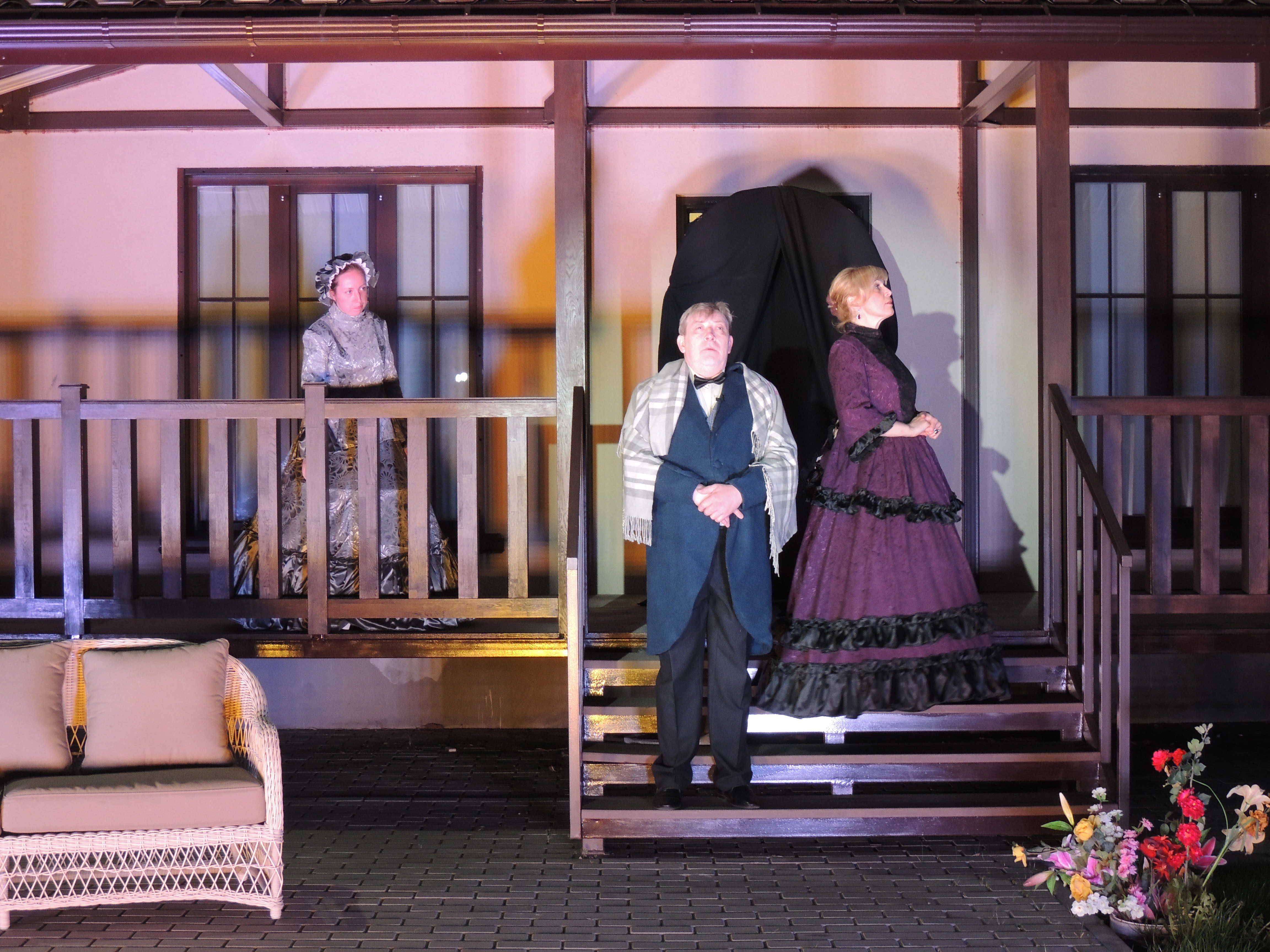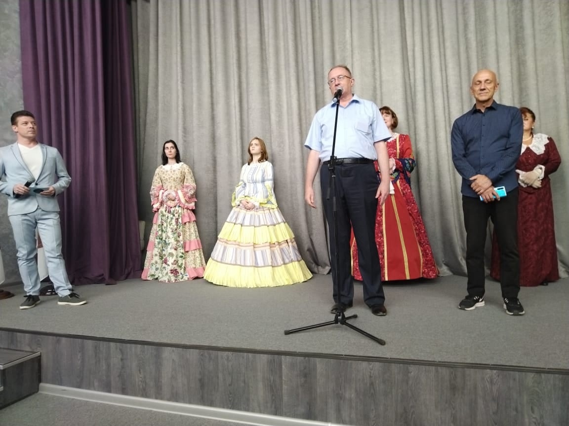 Гостей мероприятия встречали актрисы театра в репликах исторических костюмов, созданных под руководством заведующего кафедрой конструирования швейных изделий ИВГПУ Виктором Кузьмичевым к спектаклю по творчеству А. Островского.