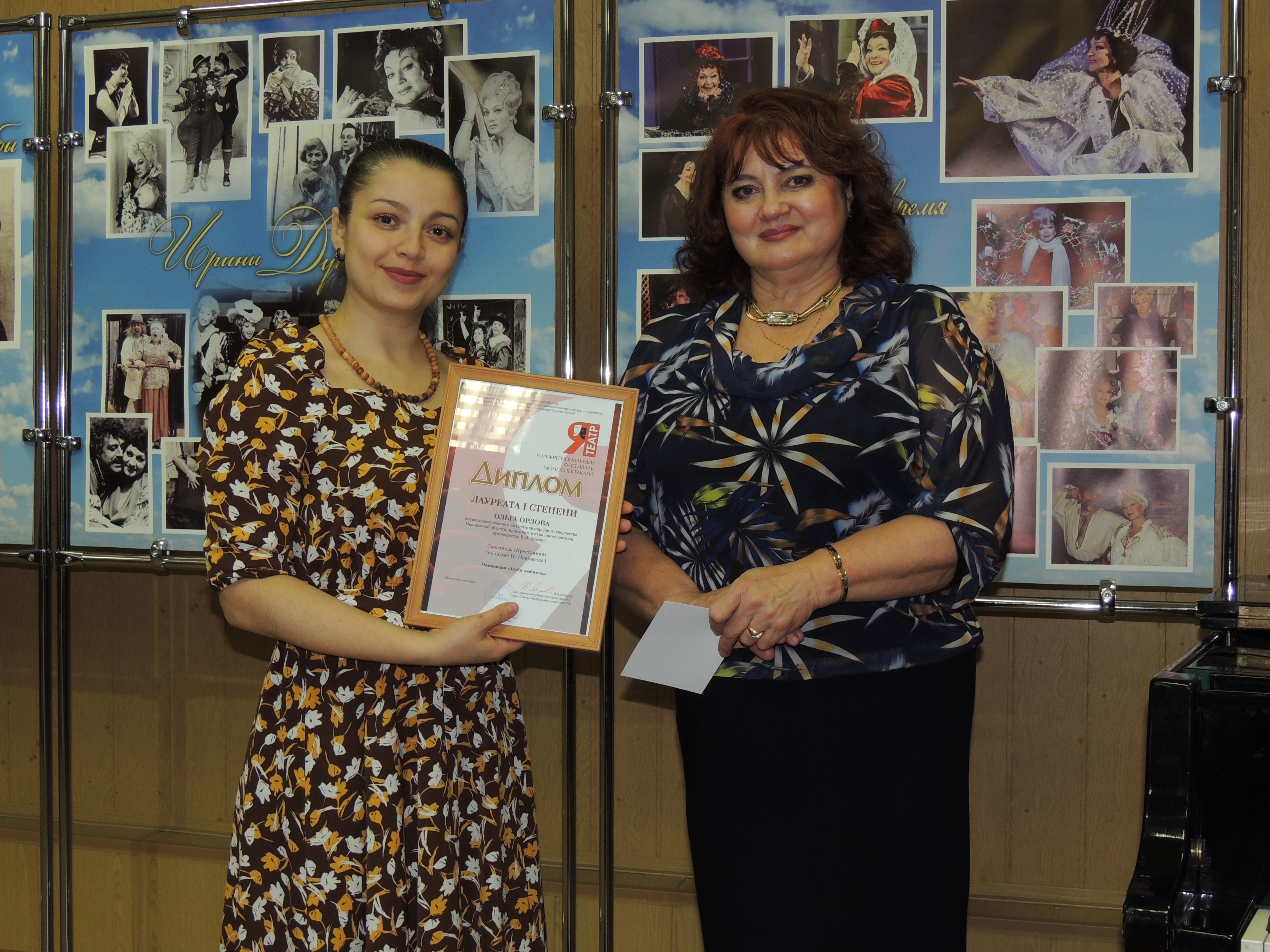 ЛАУРЕАТ I СТЕПЕНИ - ОРЛОВА ОЛЬГА, актриса заслуженного коллектива народного творчества Ивановской области Народного Театра Юного Зрителя, руководитель В.В.Маслов (Спектакль «Крестьянка» по поэме Н.Некрасова);