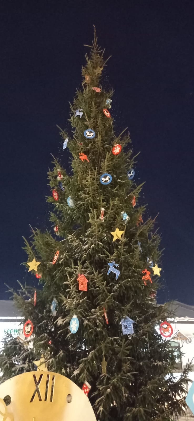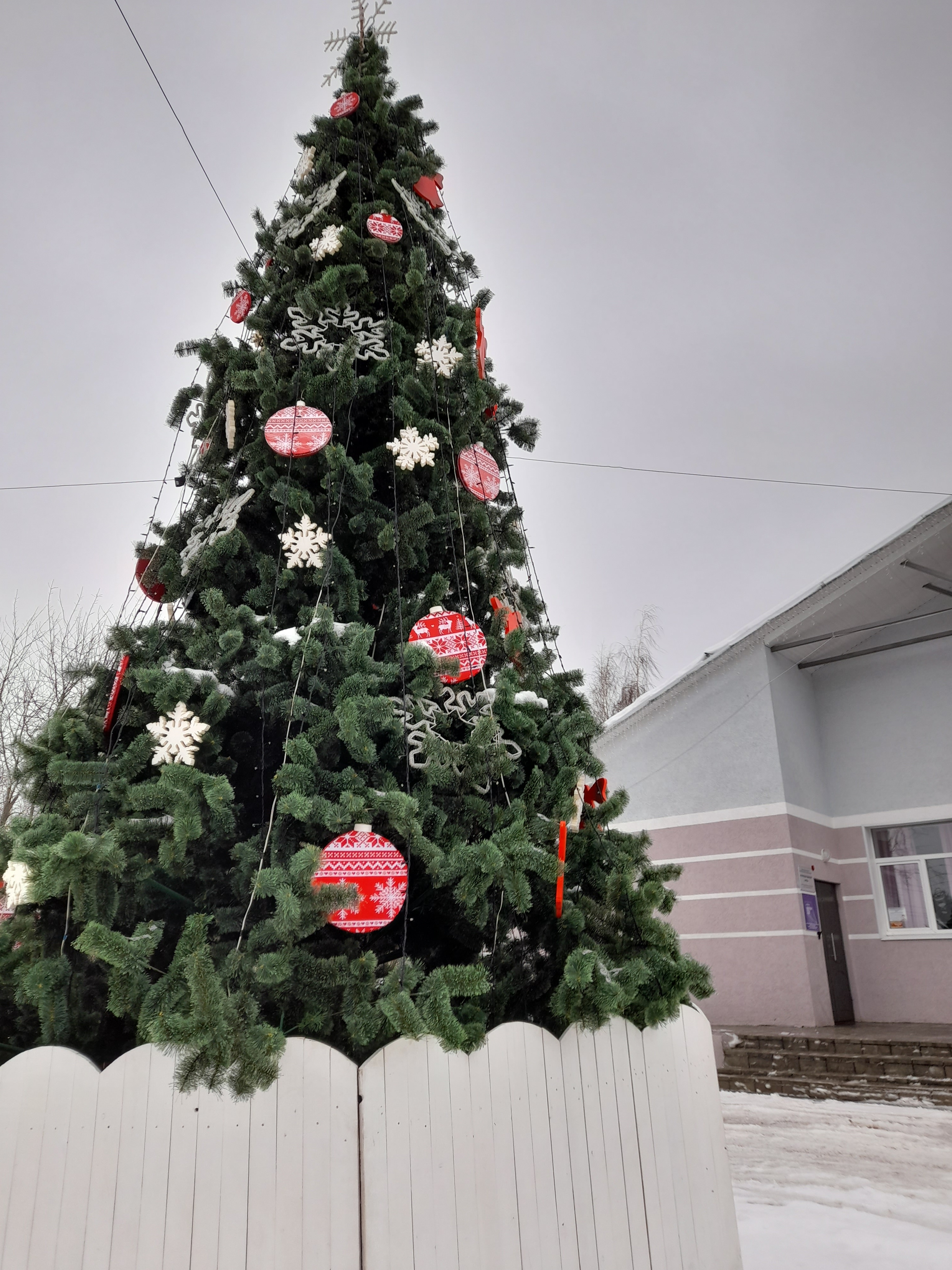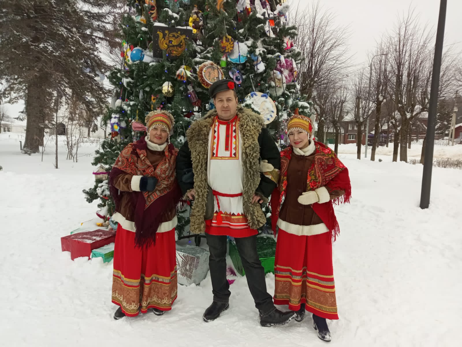 В п. Китово Шуйского района площадь перед домом культуры украсила ёлка, демонстрирующая красоту шуйской строчевой вышивки.