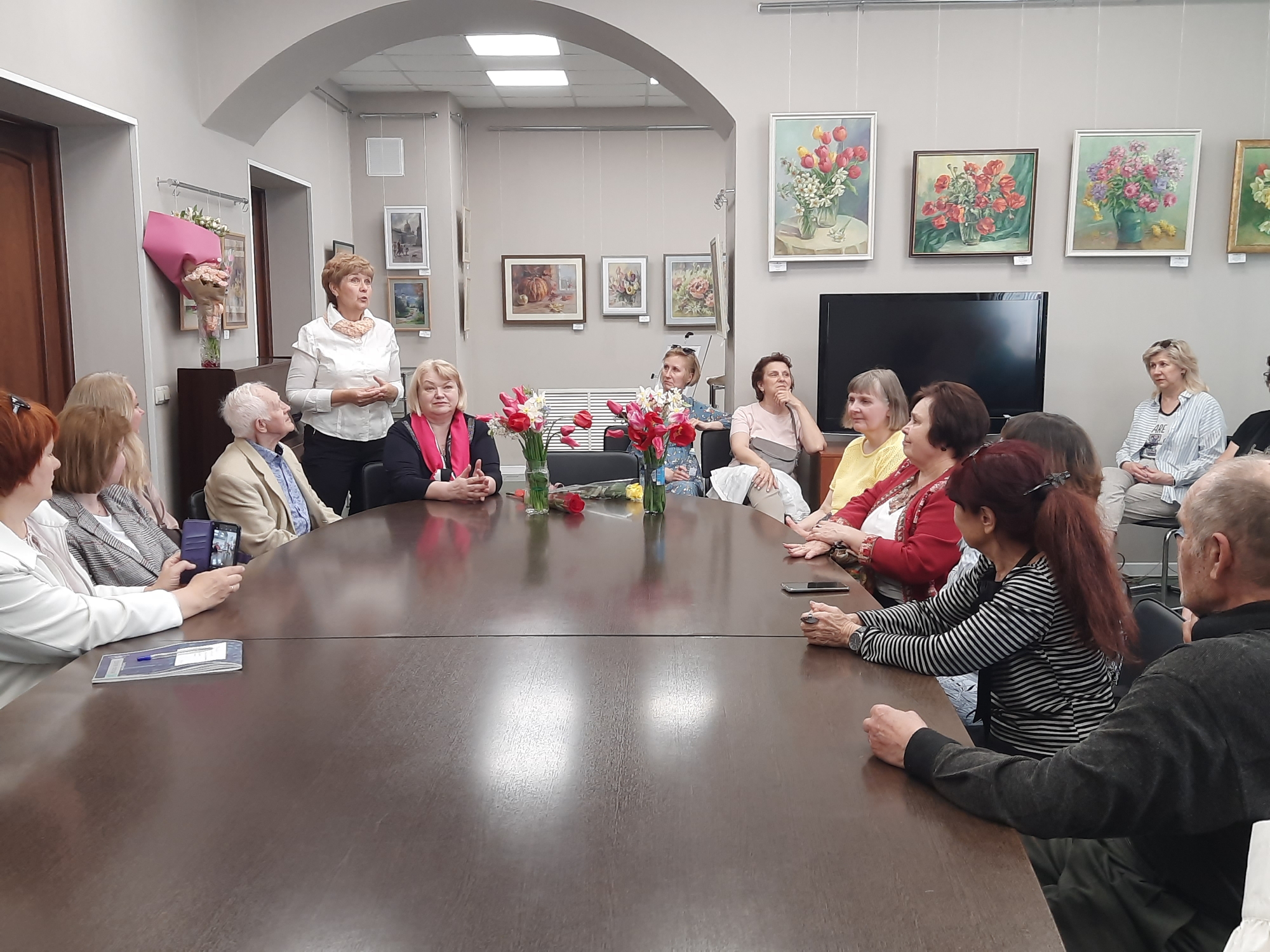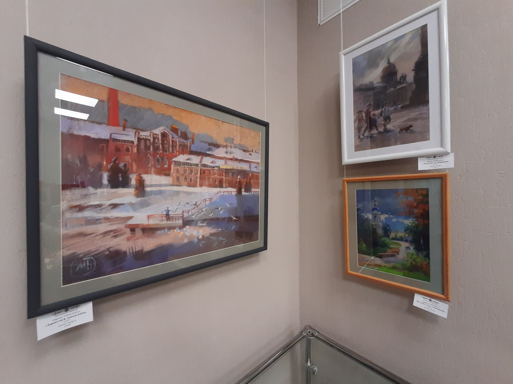 На выставке представлены натюрморты и городские зарисовки, выполненные акварелью, маслом и пастелью.