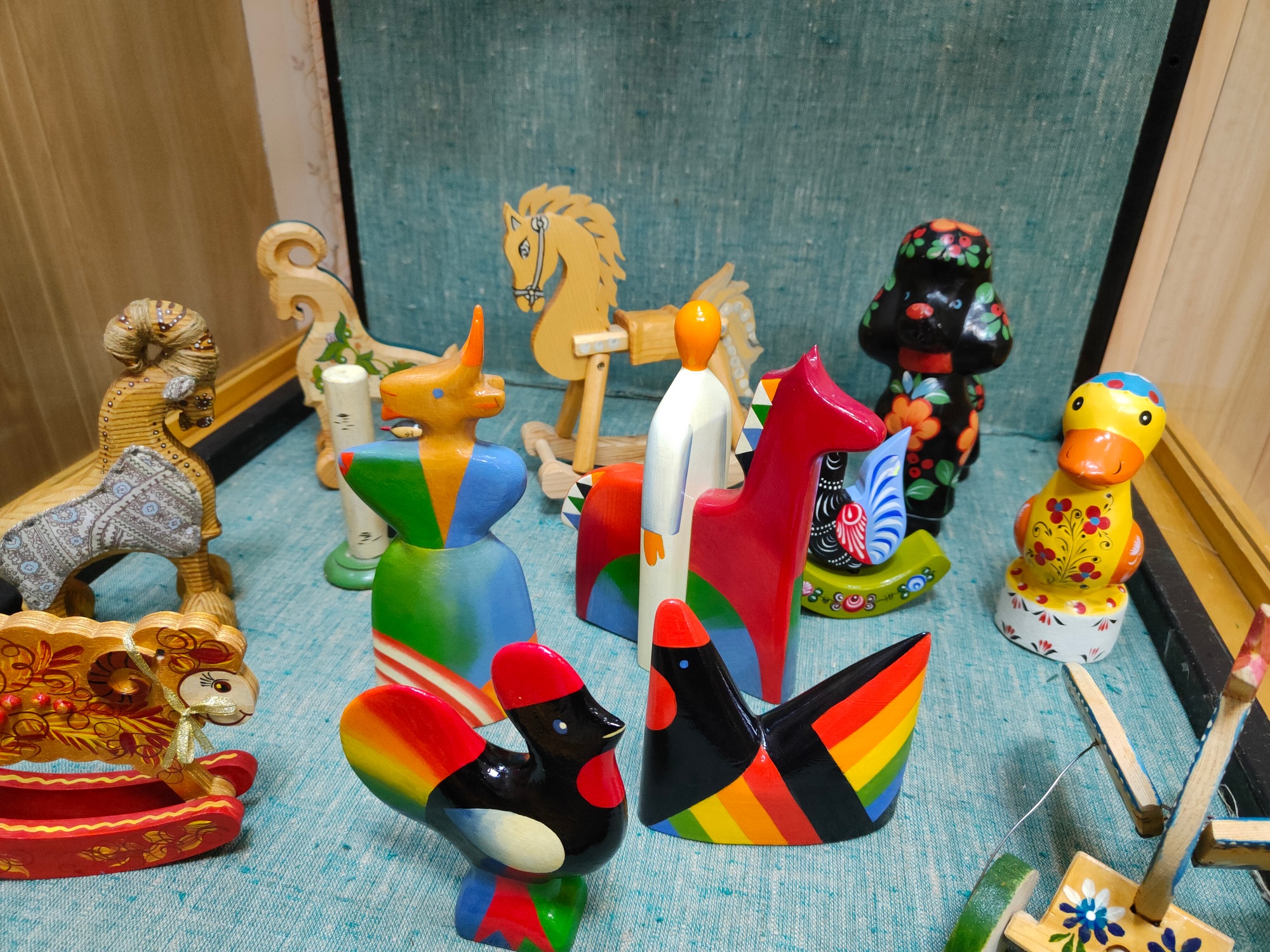 С 20 сентября 2023 года в выставочном зале Пучежского краеведческого музея при содействии Областного координационно-методического центра культуры и творчества работает выставка «Деревянные и расписные» - это часть коллекции ценителя и собирателя рукотворной игрушки Александра Михайлова (г. Москва).