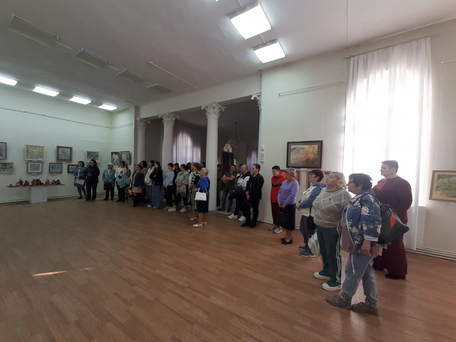 Посетители смогут увидеть здесь пейзажи, натюрморты с цветами, жанровые композиции на сказочные сюжеты древнеславянской мифологии авторства Натальи Демьяненко, её забавных кукол в образе духов домашнего очага и персонажей народных праздничных обрядов, а также образные гобелены Евгении Жарычевой, выполненные в традиционной технике полотняного переплетения из хлопка и смесовой пряжи.