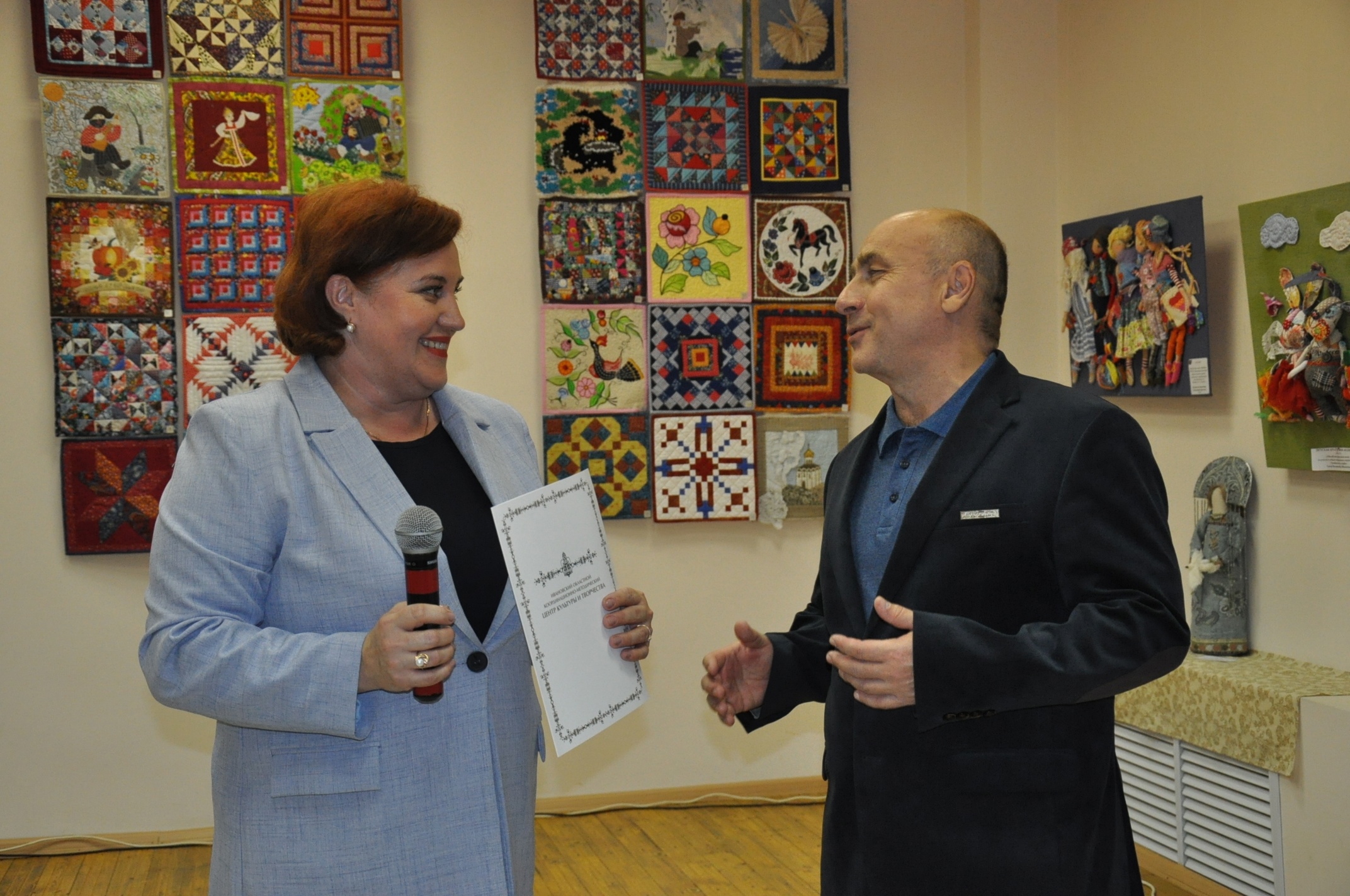 В Приволжском городском доме культуры до 24 ноября открыта выставка «Лоскутные истории». На выставке представлен масштабный проект «Русский стиль в лоскутном шитье» (куратор – Марина Тулупова, г. Иваново), авторские куклы Татьяны Ладихиной (г. Иваново), а также текстильные куклы воспитанников детской арт-студии «Колибри» и их руководителя Елены Михалкиной (г. Фурманов), а в Городском Доме культуры г. Комсомольска в эти дни проходит персональная выставка участницы народного клуба-студии «Лоскутная мозаика» Светланы Шохиной (г. Иваново). Посетителей покорили сюжетные и геометрические лоскутные панно, а также картины, написанные акварелью. После Комсомольска выставка отправится в село Писцово.