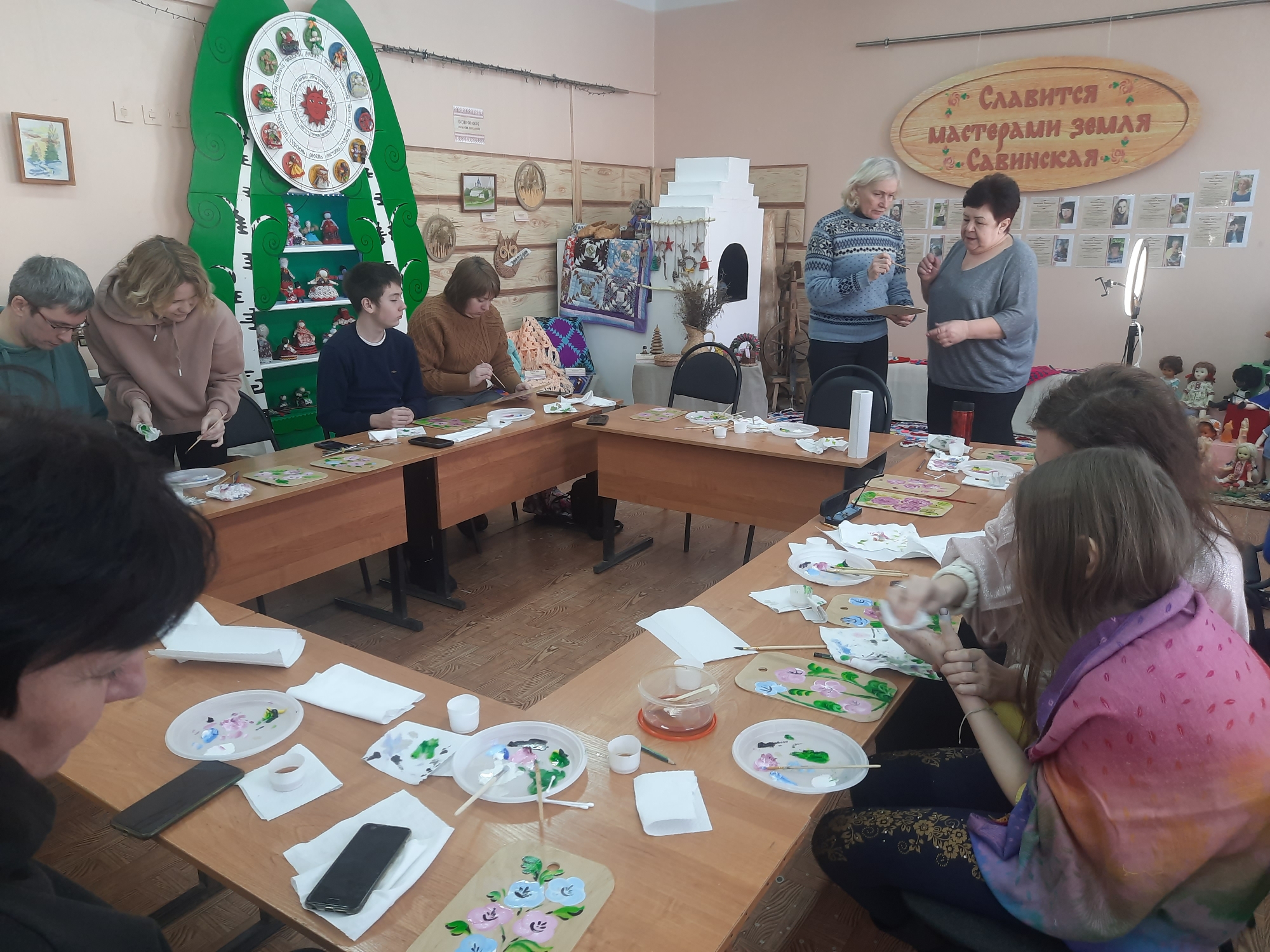 Мастер-класс провела Лидия Королёва, работавшая рисовальщицей на фабрике «Игрушки» в 70-х годах. Она показала несколько основных элементов росписи, состоявшей в основном из растительных мотивов, и научила собравшихся азам техники мазковой росписи, а также рассказала об истории фабрики и зарождении этого вида росписи. На занятии присутствовали жители Савина и гости из областного центра, в том числе заведующая отделом ИЗО и ДПИ Областного центра культуры и творчества Анастасия Шоличева, методист отдела Всеволод Меметов и руководитель творческой мастерской «Совушка» по возрождению родной культуры и традиционных ремёсел Светлана Соловьёва.