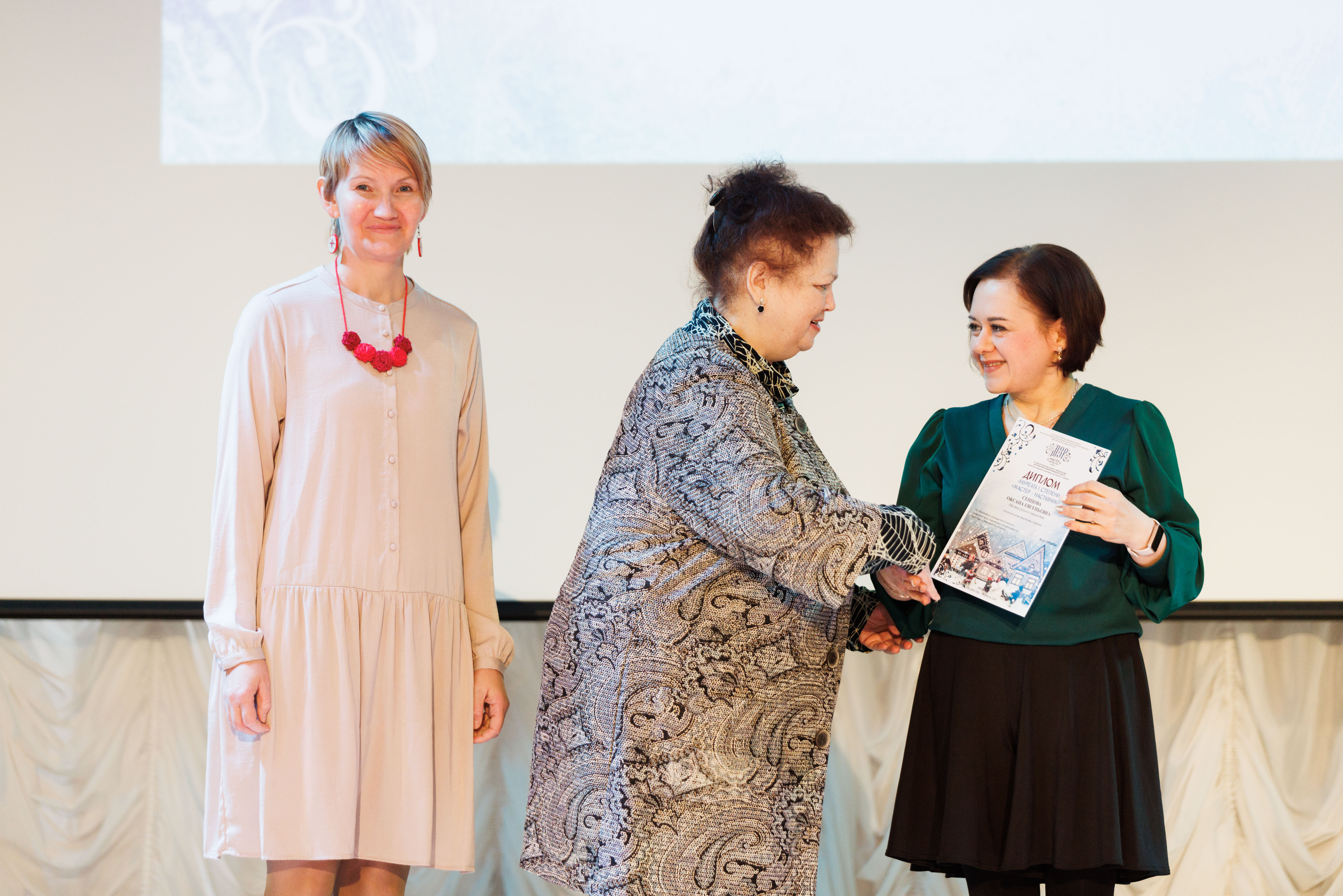 Впервые получили звание «Мастер – золотые руки» 19 соискателей. Заместитель директора Департамента культуры Ивановской области Юлия Сураева вручила дипломы и подвела итоги региональной выставки. Диплома и удостоверения «Народный мастер Ивановской области» удостоен Валерий Соколов из Кинешмы, получивший в ушедшем году и областную премию. Вторым номинантом на звание «Народный мастер» стала Елена Митачкина из села Решма Кинешемского района, она получила Благодарственное письмо от Департамента культуры.