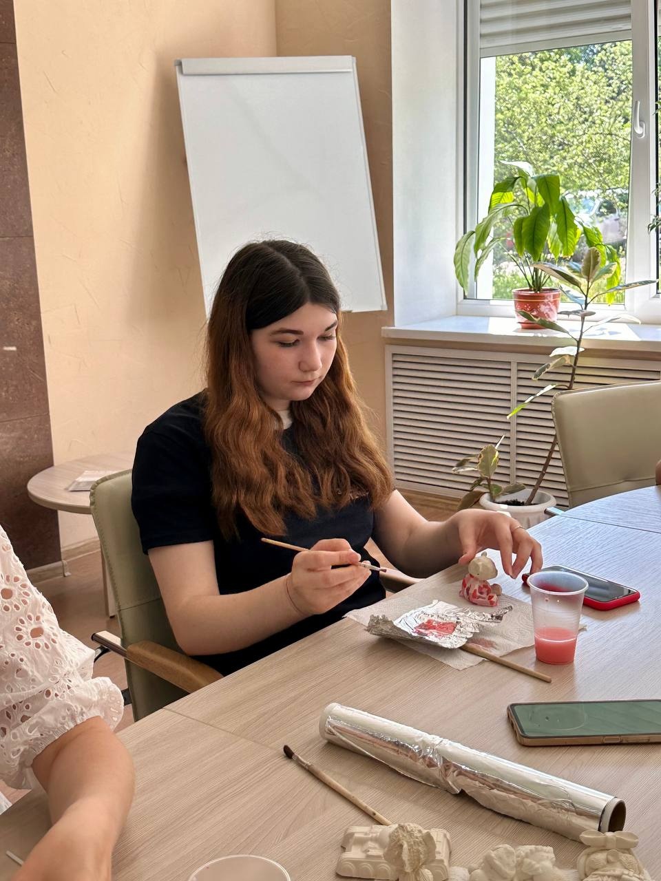 Для детей дошкольного и школьного возраста были проведены мастер-классы по гипсовой раскраске, лоскутной аппликации, текстильной птичке, украшению для цветов.