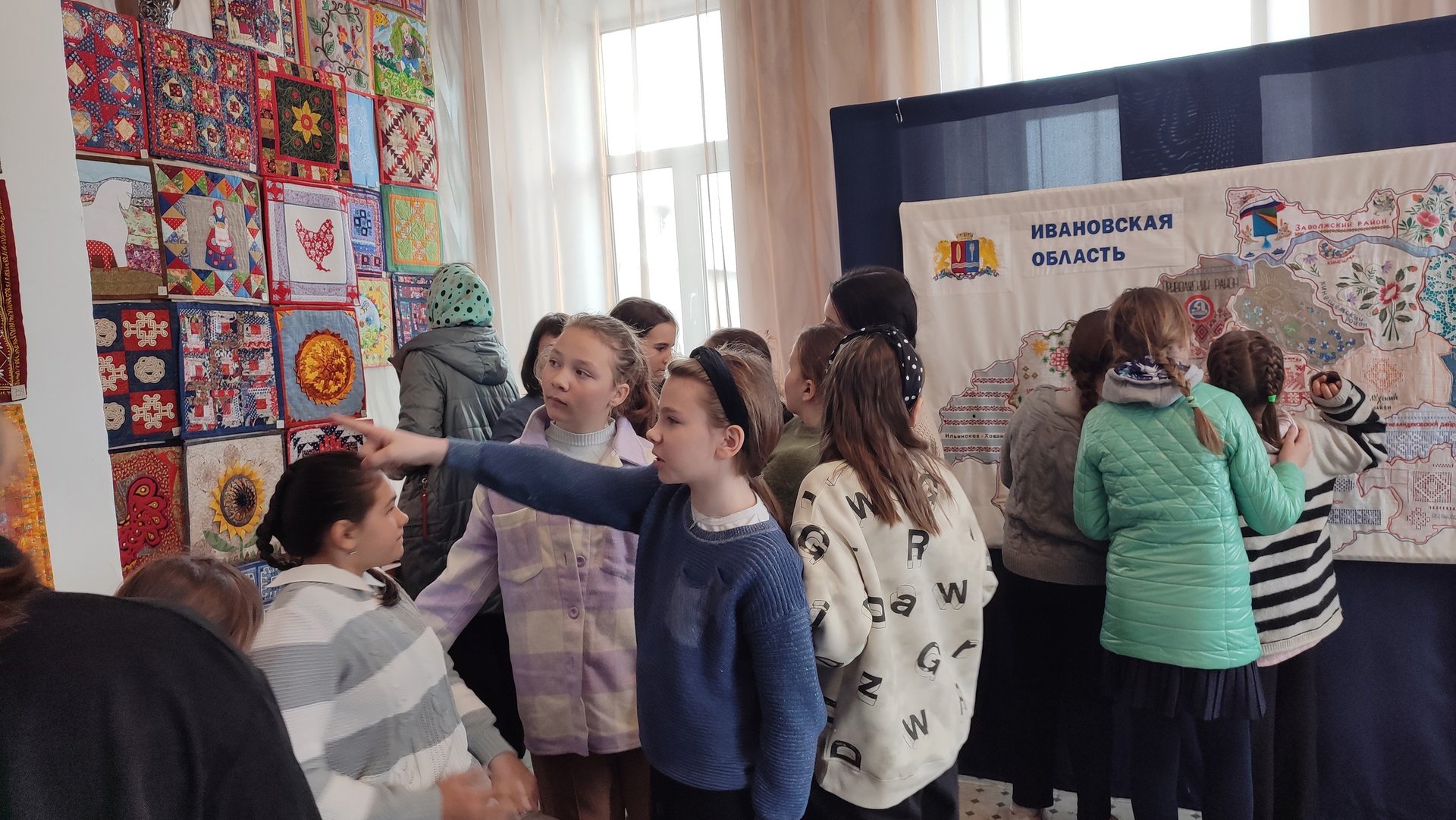 Напомним, на выставке экспонируется вышитая карта Ивановской области, созданная в рамках всероссийской акции «Вышитая Россия» в 2023 году, а также международный многочастный проект «Русский стиль в лоскутном шитье» (2019-2021 годы создания). Визуально и информационно дополняет выставку баннер «Вышитая карта России», демонстрирующий масштабный всероссийский проект, создававшийся в 2022 году всеми регионами страны, в том числе и Ивановской областью.