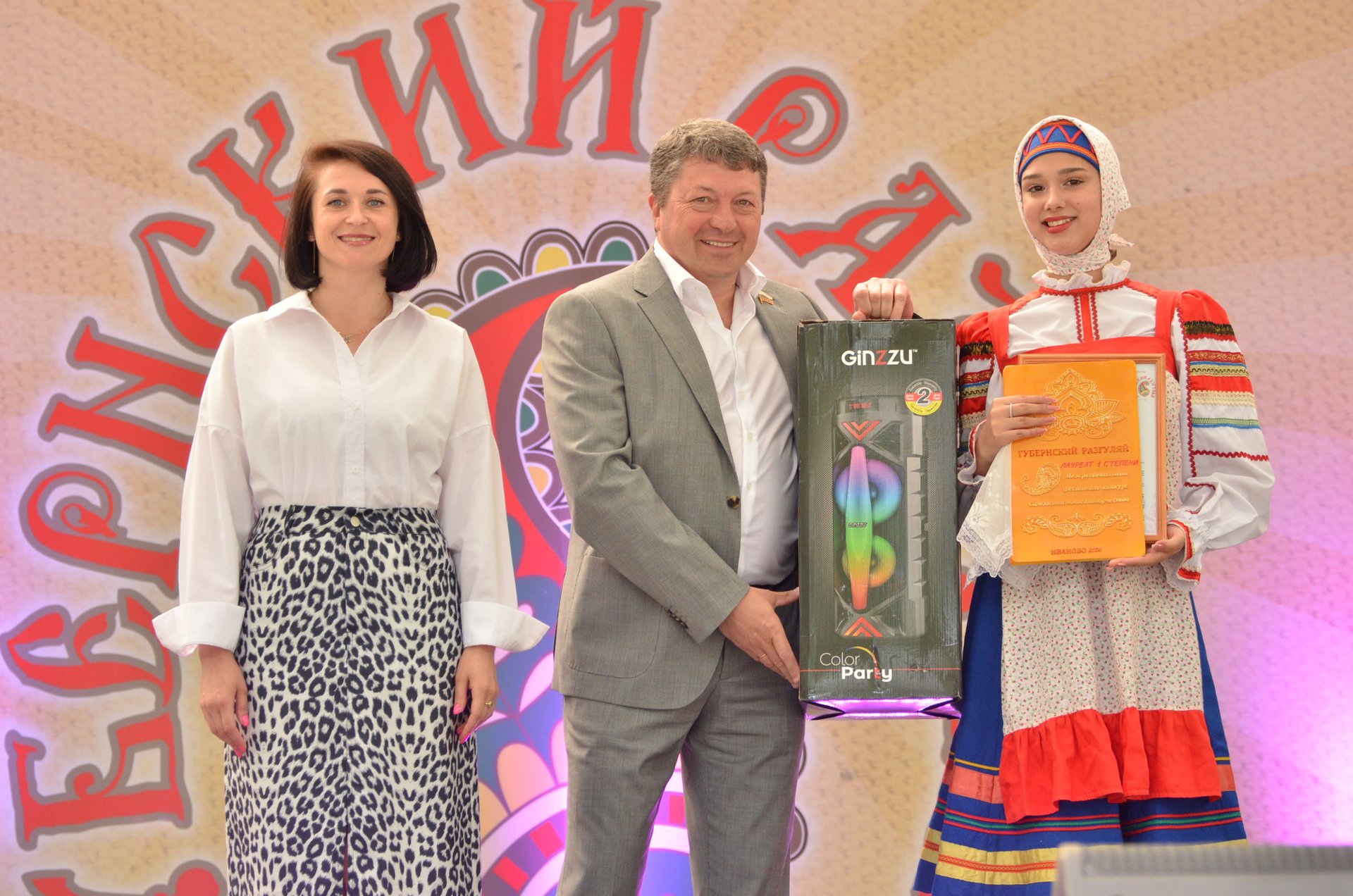 Центральным событием праздника стало исполнение гимна «Губернского разгуляя». Затем, завил свои узоры хоровод. Он увлек, объединил зрителей и участников праздника в большой и красочный движущийся узор.