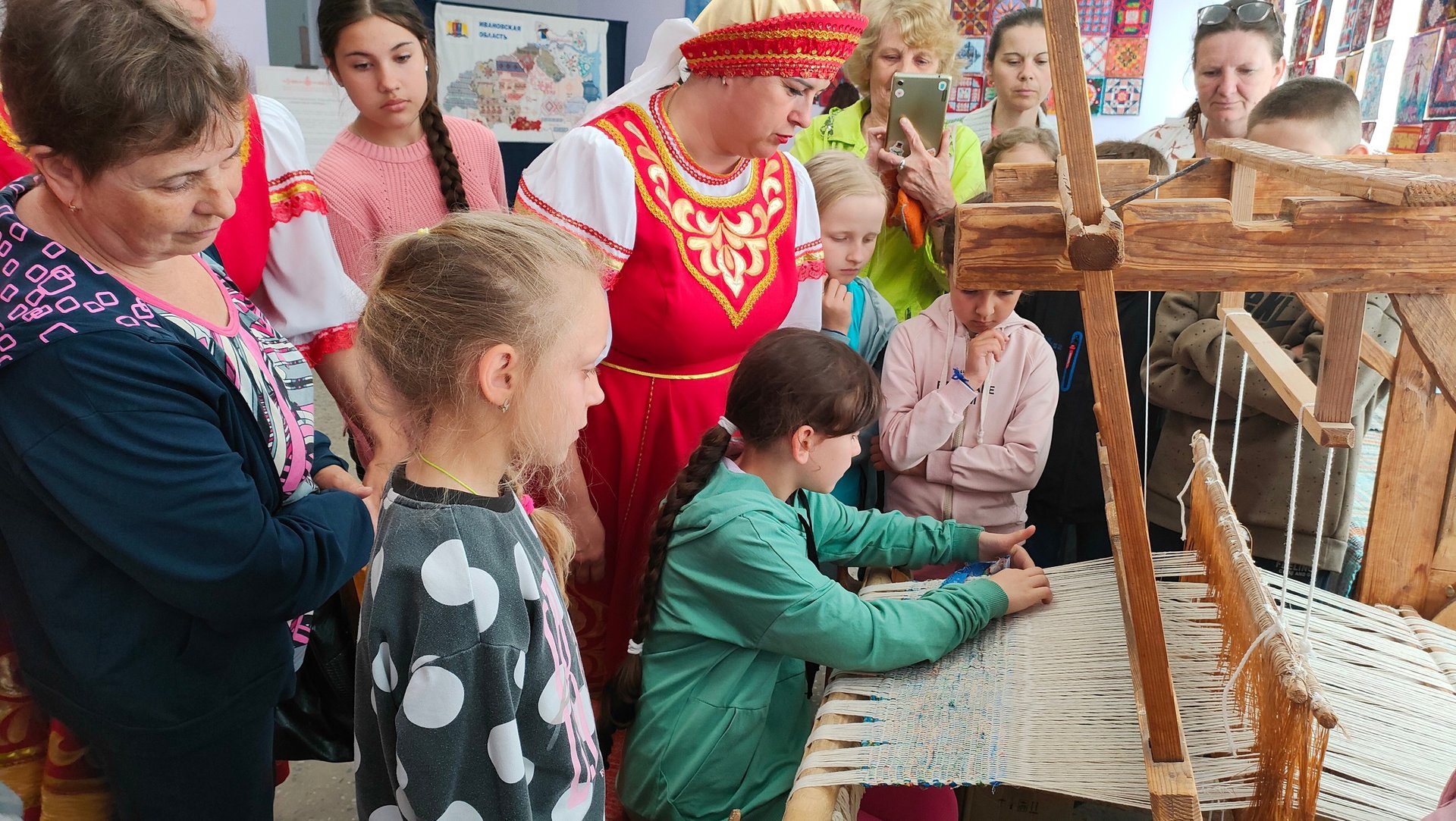 Во время работы выставки состоялась творческая встреча жителей села Тимирязево с сотрудницами «Лукового терема» посёлка Лух Ириной Симаковой и Надеждой Филатовой, которые участвовали в создании вышитой карты Ивановской области и специально для оформления фрагмента, соответствующего Лухскому району, изучали лухскую строчевую вышивку. Они продемонстрировали гостям пяльца с заправленной под разделку тканью, показали схемы, которые использовались на Лухской строчевышивальной фабрике, и старые фотографии. Методист Тимирязевского КДК Нина Тюрина познакомила школьников, пришедших на выставку, ещё с одним традиционных ремеслом – ручным ткачеством на стане.