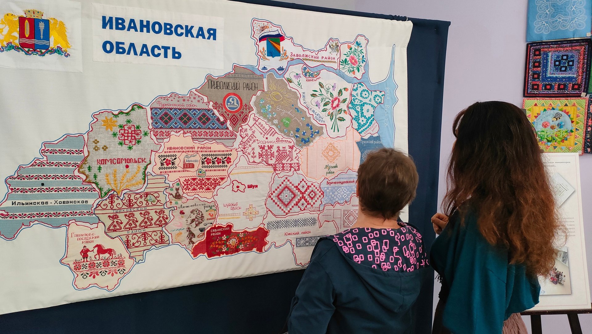 Напомним, на выставке экспонируется вышитая карта Ивановской области, созданная в рамках всероссийской акции «Вышитая Россия» в 2023 году, а также международный многочастный проект «Русский стиль в лоскутном шитье» (2019-2021 годы создания). Визуально и информационно дополняет выставку баннер «Вышитая карта России», демонстрирующий масштабный всероссийский проект, создававшийся в 2022 году всеми регионами страны, в том числе и Ивановской областью.